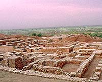 The Harappan enigma The Harappan civilization mysteriously disappeared in 1900 BC, after almost 2,000 years of continuous existence. Some researchers have argued that the civilization slowly declined because of changing trade patterns; others, now mostly discredited, blamed Aryan invaders from the north. Prasad and Nur blame earthquakes. Last January, a catastrophic earthquake struck the southern edge of the former Harappan territory, a coastal area near the border between India and Pakistan. In 1819, a similar earthquake raised an 80 to 100-kilometer (50 to 62 mile) ridge of earth about 20 feet (6 meters), creating an artificial dam known as the "Allah Bund" (God's Dam). Both earthquakes are evidence that the Harappan region, though not near a traditional fault zone, is seismically active. The evidence of seismic activity in the region, combined with the recent discovery of an ancient riverbed at the center of the former Harappan region, offers a possible explanation for the civilization's decline. Four millennia ago, one or more quakes could have blocked or diverted the water that flowed through the riverbed, say Prasad and Nur. That would have helped turn the part of the Harappan region into the desert it is today -- and destroyed the Harappan civilization in the process.