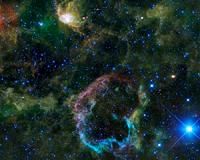 WISE Sees An Explosion Of Infrared LightPasadena CA (JPL) Dec 13, 2010 This oddly colorful nebula is the supernova remnant IC 443 as seen by NASA's Wide-field Infrared Survey Explorer, or WISE. Also known as the Jellyfish nebula, IC 443 is particularly interesting because it provides a look into how stellar explosions interact with their environment. IC 443 can be found near the star Eta Geminorum, which lies near Castor, one of the twins in the constellation ... read more |