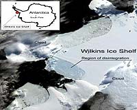 Boulder CO (SPX) Mar 26, 2008 Satellite imagery from the University of Colorado at Boulder's National Snow and Ice Data Center shows a portion of Antarctica's massive Wilkins Ice Shelf has begun to collapse because of rapid climate change in a fast-warming region of the continent. While the area of collapse involves 160 square miles at present, a large part of the 5,000-square-mile Wilkins Ice Shelf is now supported only by a narrow strip of ice between two islands, said CU-Boulder's Ted Scambos, lead scientist at NSIDC. "If there is a little bit more retreat, this last 'ice buttress' could collapse and we'd likely lose about half the total ice shelf area in the next few years." In the past 50 years, the western Antarctic Peninsula has experienced the biggest temperature increase on Earth, rising by 0.9 degree F per decade. "We believe the Wilkins has been in place for at least a few hundred years, but warm air and exposure to ocean waves are causing a breakup," said Scambos, who first spotted the disintegration activity in March. Satellite images indicate the Wilkins began its collapse on Feb. 28. Data revealed that a large iceberg, measuring 25.5 by 1.5 miles, fell away from the ice shelf's southwestern front, triggering a runaway disintegration of 220 square miles of the shelf interior. The Wilkins Ice Shelf is a broad sheet of permanent floating ice on the southwest Antarctic Peninsula roughly 1,000 miles south of South America. The edge of the shelf crumbled into the sky-blue pattern of exposed deep glacial ice that has become characteristic of climate-induced ice shelf breakups such as the Larsen B ice shelf breakup in 2002, said Scambos. A narrow beam of intact ice about 3.7 miles wide was protecting the remaining shelf from further breakup as of March 23. Scientists track ice shelves and study collapses carefully because some of them hold back glaciers, which if unleashed, can accelerate and raise sea level, Scambos said. "The Wilkins disintegration won't raise sea level because it already floats in the ocean, and few glaciers flow into it. However, the collapse underscores that the Wilkins region has experienced an intense melt season. Regional sea ice has all but vanished, leaving the ice shelf exposed to the action of waves." With Antarctica's summer melt season drawing to a close, scientists do not expect the Wilkins to further disintegrate in the next several months. "This unusual show is over for this season," Scambos said. "But come January, we'll be watching to see if the Wilkins continues to fall apart." After images from NASA's Moderate Resolution Imaging Spectroradiometer, or MODIS, and data from the ICESat satellite showed that a portion of the ice shelf was in a state of collapse in March, Scambos alerted colleagues around the world. The British Antarctic Survey flew over the shelf, collecting video footage and other observations. BAS glaciologist David Vaughan, who said the ice shelf is supported by a single strip of ice strung between two islands, said the Wilkins is the largest ice shelf on West Antarctica yet to be threatened. "This shelf is hanging by a thread." Associate Professor Cheng-Chien Liu at Taiwan's National Cheng-Kung University used high-resolution color satellite images of the area from Taiwan's Formosat-2 satellite operated by the National Space Organization to analyze the activity. "It looks as if something is slicing the ice shelf piece by piece on an incredible scale, kilometers long but only a few hundred meters in width," Cheng-Chien said. In addition, Andres Rivera and Gino Cassasa at the Laboratory for Glaciology and Climate Change at the Center of Scientific Study in Chile acquired images of the Wilkins from the ASTER instrument aboard NASA's Terra satellite. The combined efforts have begun to provide observational data that will improve scientific understanding of the mechanisms behind ice shelf collapse, Scambos said. "The Wilkins is an example of an event we don't see very often, but it's a key process in being able to predict how sea level will change in the future." The Wilkins is one of a string of ice shelves that have collapsed in the West Antarctic Peninsula in the past 30 years. The Larsen B became the most well-known of these, disappearing in just over 30 days in 2002. The Prince Gustav Channel, Larsen Inlet, Larsen A, Wordie, Muller and Jones ice shelf collapses also underscore the unprecedented warming in this region of Antarctica, said Scambos. Community Email This Article Comment On This Article Related Links University of Colorado at Boulder Beyond the Ice Age