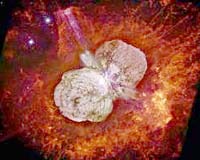 Baltimore MD (SPX) Dec 12, 2005Clues revealed by the recently sharpened view of the Hubble Space Telescope have allowed astronomers to map the location of invisible "dark matter" in unprecedented detail in two very young galaxy clusters. |