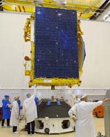 Kourou, French Guyana (SPX) Jul 25, 2006 Arianespace's upcoming Ariane 5 ECA flight will match a range of payloads for its dual-satellite launch. The next mission, scheduled for Aug. 11, will carry France's Syracuse 3B military relay platform, along with the civilian JCSAT-10 telecommunications spacecraft for Japan's JSAT Corp. Both satellites currently are undergoing their final check-out in the modern S5 satellite preparation facility at Europe's Spaceport. This massive facility enables multiple spacecraft to be readied at the same time - with the ability to process sensitive satellites such as military payloads under conditions of total security. Syracuse 3B will have a liftoff mass of 3,700 kilograms (8,140 pounds) and will operate in the SHF (super high frequency) and EHF (extremely high frequency) bands. Produced by Europe's Alcatel Alenia Space for the French DGA defense procurement agency, the satellite has been hardened to resist nuclear attack and is to offer significantly enhanced service in terms of data throughout and resistance to countermeasures. Its JCSAT-10 co-passenger weighs 4,000 kilograms (8,800 pounds) and is a hybrid satellite that carries Ku-band high-power transponders and C-band medium-power transponders. It was built by Lockheed Martin Commercial Space Systems and will be located at 128 degrees east longitude for operation by JSAT. The mission follows the Ariane 5 ECA launch on May 27, which carried the Satmex 6 and Thaicom 5 satellites with a record payload weight of 8,200 kilograms (18,040 pounds) to geostationary transfer orbit. That launch was preceded by the March 11 flight of an Ariane 5 ECA to loft the HOT BIRDTM 7A and SPAINSAT satellites. Community Email This Article Comment On This Article Related Links Arianespace Launch Pad at Space-Travel.com