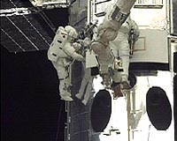 earlier related report Spacewalkers John Grunsfeld and Drew Feustel upgraded the telescope for the first time in seven years on Thursday, equipping the 19-year-old stargazer with a powerful new camera and science computer during a seven-hour outing. On Friday at 1216 GMT, it will be the turn of Mike Good and Mike Massimino, who are to replace sensor units for the Hubble's gyroscopes and swap the first of two batteries. The second spacewalk is set to last six and a half hours. If the time allows, the astronauts also hope to prepare for the mission's third outing by installing a power input harness for Hubble's new advanced camera. Good and Massimino, both 46 years old, will be hoping not to encounter any problems like the dodgy bolt that threatened to prevent Grunsfeld and Feustel on Thursday from removing the telescope's old camera. Feustel, a 43-year-old geologist and a rookie astronaut, provided the muscle that eventually freed the bolt. His companion Grunsfeld used the baseball parlance for tricky curveball pitches to describe the incident. "We gave Hubble a hug, and true to form Hubble gave us a few curves," said the 50-year-old, who is making his third visit to the telescope -- more than any other astronaut. The refurbishments should mean the iconic telescope -- named after the great US astronomer Edwin Hubble -- can send back its fantastic images to Earth for an extra five years. The new camera will equip Hubble, which whizzes around the Earth at more than 17,500 miles per hour (28,000 kilometers per hour), to search for the most distant star systems, probing the mysteries of dark matter and dark energy. Atlantis and its seven-member crew arrived on Wednesday and hoisted the 13.2-meter telescope aboard using the shuttle's robotic arm, which was operated by mission specialist Megan McArthur. The spacewalkers struggled on Thursday to replace the telescope's Wide Field and Planetary Camera-2, a 16-year-old imager, with the new Wide Field Camera-3, a more versatile and capable instrument. The older camera was stubborn about making way for its replacement. Grunsfeld and Feustel reached for an assortment of ratchet tools to remove two bolts that secured the 16-year-old imager inside the telescope, throwing them about 30 minutes behind their timeline. As Grunsfeld reached into a tool bag for one of the ratchets, a rivet floated out. The veteran spacewalker reacted quickly by grabbing the fastener before it could float away becoming yet another piece of space debris. The spacewalkers also worked with caution to avoid disturbing a dusting of white material spotted near the shuttle's airlock on Wednesday. NASA feared the material might float free and contaminate the telescope's optics. "I see a small amount of what looks like dust, but it's pretty minor," Feustel assured Mission Control. The installation of a new science computer proved to be a much easier task. The Science Instrument Command and Data Handling System experienced an electrical problem in late September. The setback prompted NASA to postpone plans to launch the Hubble mission in October so engineers could prepare a replacement. The computer prepares each of the telescope's science instruments for astronomical observations and formats the findings for transmission to Earth. Although NASA has no plans for a future shuttle visit to Hubble, a new docking device also installed on the first spacewalk would allow a robotic spacecraft with a propulsion module to latch onto the observatory. When Hubble is no longer able to conduct observations, NASA plans to steer the space telescope into the Pacific Ocean rather than allowing it to plunge back to Earth uncontrolled, potentially endangering a populated area. During a third spacewalk on Saturday, astronauts will install the Cosmic Origins Spectrograph, an instrument developed to study the grand scale structure of the universe, including the star-driven chemical evolution that produced carbon and the other elements necessary for life. Share This Article With Planet Earth