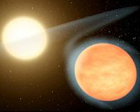 Cambridge MA (SPX) Dec 10, 2010 A team led by a former postdoctoral researcher in MIT's Department of Earth, Atmospheric and Planetary Sciences and the MIT Kavli Institute for Astrophysics, recently measured the first-ever planetary atmosphere that is substantially enriched in carbon. The researchers found that the carbon-to-oxygen ratio of WASP-12b, an exoplanet about 1.4 times the mass of Jupiter and located about 1,200 light years away, is greater than one. As they report in a paper to be published on Dec. 8 in Nature, this carbon-rich atmosphere supports the possibility that rocky exoplanets could be composed of pure carbon rocks like diamond or graphite rather than the silica-based rock found in Earth. "This is new territory and will motivate researchers to study what the interiors of carbon-rich planets could be made of," says lead author Nikku Madhusudhan, who is now a postdoctoral researcher at Princeton University. Although WASP-12b is a "hot Jupiter," or a Jupiter-sized, extremely hot exoplanet, that is largely made of gas and has no surface to host life, the first-ever finding of a carbon-rich exoplanet is significant because it introduces an entirely new class of exotic exoplanets to explore. It's also possible that rockier, Earth-sized exoplanets may have formed around the same star as WASP-12b billions of years ago. If detected, these smaller planets could also have carbon-rich atmospheres and interiors, meaning that for life to exist on these planets, it might have to survive with very little water and oxygen, and plenty of methane, says Madhusudhan. That might not be so far-fetched given last week's announcement by NASA of the discovery on Earth of bacteria that can survive in arsenic, a poison to humans. Astronomers can figure out a planet's atmospheric composition by observing its flux, or the light emitted by the planet, at different wavelengths. The team, coordinated by Joe Harrington, a planetary scientist at the University of Central Florida, used NASA's Spitzer Space Telescope to observe the flux from WASP-12b, at four wavelengths, right before it passed behind the star, an event known as secondary eclipse. Those observations were then combined with previously published observations, at three other wavelengths, obtained from Earth using the Canada-France-Hawaii Telescope in Hawaii. The planet was discovered in 2009 by researchers at the United Kingdom-based consortium for Wide Angle Search for Planets (WASP), who are also coauthors of the study. Madhusudhan used the observations to conduct a detailed atmospheric analysis using a modeling technique he pioneered for exoplanetary atmospheres. The computer program he developed combines certain variables, such as a planet's temperature distribution, with different amounts of the most prominent molecules that exist in such atmospheres, which are methane, carbon dioxide, carbon monoxide, water vapor and ammonia, into one formula that produces a theoretical spectrum, or flux at different wavelengths. The program analyzes millions of combinations of these variables, tracking those that most closely match the flux values measured by the telescopes. Through statistical analysis of these values, Madhusudhan can determine the most likely composition of the atmosphere. Based on theories about what extremely hot Jupiters such as WASP-12b should look like, assuming carbon-to-oxygen ratios of 0.5, previous models suggested that their atmospheres should have plenty of water vapor, very little methane and an atmospheric layer known as a stratosphere. Instead, Madhusudhan's team detected an atmosphere with more than 100 times excess methane and less water than had been expected. The observed composition is consistent with a carbon-to-oxygen ratio that is greater than one. The team also discovered the lack of a strong stratosphere, which contradicts existing theories of hot Jupiter atmospheres. The discovery suggests that chunks of rock called planetesimals that slammed together to form WASP-12b billions of years ago may have been made of carbon-rich compounds like tar - a far cry from the watery, icy planetesimals that are thought to have formed the solar-system planets. This means that if smaller exoplanets are found to have carbon-rich atmospheres, their surfaces could be covered in a tar-like substance. Future research will investigate whether life - perhaps drastically different from life as we know it - could survive in such a carbon-rich environment. "It's exciting to even think about the possibility" of what carbon-rich planets could look like, says Adam Showman, a planetary scientist at the University of Arizona, who explains that although researchers knew that other solar systems should have a range of carbon-to-oxygen values, "this paper finally moves the discussion from pure speculation to plausible reality." He notes that exoplanets with carbon-based interiors could exhibit a range of surface features, atmospheric compositions and potential for oceans or life. Source: "A high C/O ratio and weak thermal inversion in the atmosphere of exoplanet WASP-12b," by Nikku Madhusudhan, Joseph Harrington, Kevin B. Stevenson, Sarah Nymeyer, Christopher J. Campo, Peter J. Wheatley, Drake Deming, Jasmina Blecic, Ryan A. Hardy, Nate B. Lust, David R.Anderson, Andrew Collier-Cameron, Christopher B. T. Britt, William C. Bowman, Leslie Hebb, Coel Hellier, Pierre F. L. Maxted, Don Pollacco8 and Richard G. West. Nature, 8 December, 2010.