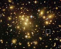 Pasadena CA (SPX) Feb 13, 2008 NASA's Hubble and Spitzer space telescopes, with a boost from a natural "zoom lens," have uncovered what may be one of the youngest and brightest galaxies ever seen in the middle of the cosmic "dark ages," just 700 million years after the beginning of our universe. The detailed images from Hubble's Near Infrared Camera and Multi-Object Spectrometer reveal an infant galaxy, dubbed A1689-zD1, undergoing a firestorm of star birth during the dark ages, a time shortly after the Big Bang but before the first stars reheated the cold, dark universe. Images from NASA's Spitzer Space Telescope's Infrared Array Camera provided strong additional evidence that it was a young star-forming galaxy in the dark ages. "We certainly were surprised to find such a bright young galaxy 12.8 billion years in the past," said astronomer Garth Illingworth of the University of California, Santa Cruz, and a member of the research team. "This is the most detailed look to date at an object so far back in time." "The Hubble images yield insight into the galaxy's structure that we cannot get with any other telescope," added astronomer Rychard Bouwens of UC Santa Cruz, a co-discoverer. The new images should offer insights into the formative years of galaxy birth and evolution and yield information on the types of objects that may have contributed to ending the dark ages. The faraway galaxy also is an ideal target for Hubble's successor, the James Webb Space Telescope, scheduled to launch in 2013. During its lifetime, the Hubble telescope has peered ever farther back in time, viewing galaxies at successively younger stages of evolution. These snapshots have helped astronomers create a scrapbook of galaxies from infancy to adulthood. The new Hubble and Spitzer images of A1689-zD1 show a time when galaxies were in their infancy. Current theory holds that the dark ages began about 400,000 years after the Big Bang, as matter in the expanding universe cooled and formed clouds of cold hydrogen. These cold clouds pervaded the universe like a thick fog. At some point during this era, stars and galaxies started to form. Their collective light reheated the foggy, cold hydrogen, ending the dark ages about a billion years after the Big Bang. "This galaxy presumably is one of the many galaxies that helped end the dark ages," said astronomer Larry Bradley of Johns Hopkins University in Baltimore, Md., and leader of the study. "Astronomers are fairly certain that high-energy objects such as quasars did not provide enough energy to end the dark ages of the universe. But many young star-forming galaxies may have produced enough energy to end it." The galaxy is so far away it did not appear in images taken with Hubble's Advanced Camera for Surveys, because its light is stretched to invisible infrared wavelengths by the universe's expansion. It took Hubble's near infrared camera/spectrometer, Spitzer, and a trick of nature called gravitational lensing to see the faraway galaxy. The astronomers used a relatively nearby massive cluster of galaxies known as Abell 1689, roughly 2.2 billion light-years away, to magnify the light from the more distant galaxy directly behind it. This natural telescope is called a gravitational lens. Though the diffuse light of the faraway object is nearly impossible to see, gravitational lensing has increased its brightness by nearly 10 times, making it bright enough for Hubble and Spitzer to detect. A telltale sign of the lensing is the smearing of the images of galaxies behind Abell 1689 into arcs by the gravitational warping of space by the intervening galaxy cluster. The images reveal bright, dense clumps of hundreds of millions of massive stars in a compact region about 2,000 light-years across, which is only a fraction of the width of our Milky Way Galaxy. This type of galaxy is not uncommon in the early universe, when the bulk of star formation was taking place, Bradley and Illingworth said. Spitzer's images show the galaxy's mass is typical of galaxies in the early universe. Its mass is equivalent to several billions of sunlike stars, or just a tiny fraction of the mass of the Milky Way. "This observation confirms previous Hubble studies that star birth happens in very tiny regions compared with the size of the final galaxy," Illingworth said. Even with the increased magnification from the gravitational lens, Hubble's sharp "eye" can only see knots of the brightest, heftiest stars in the galaxy. The telescope cannot pinpoint fainter, lower-mass stars, individual stars, or the material surrounding the star-birthing region. To see those things, astronomers will need the infrared capabilities of the Webb Telescope. The planned infrared observatory will have a mirror about seven times the area of Hubble's primary mirror and will collect more light from faint galaxies. It also will be able to view even more remote galaxies whose light has been stretched deep into infrared wavelengths that are out of the reach of Hubble. Team member Holland Ford of Johns Hopkins University said this galaxy will be one of the first objects the Webb Telescope will observe, saying, "This object is a pathfinder for the James Webb Space Telescope for deciphering what is happening in young galaxies." The astronomers noted that the faraway galaxy also would be an ideal target for the Atacama Large Millimeter Array, which, when completed in 2012, will be the world's most powerful radio telescope. Community Email This Article Comment On This Article Related Links Stellar Chemistry, The Universe And All Within It