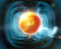 Pasadena CA (SPX) Dec 07, 2007 Typically, little M-dwarf stars-the most common type of star in the galaxy-are cold, quiet, and dim. Now a team of astronomers led by Edo Berger, a Carnegie-Princeton postdoctoral fellow, found one M-dwarf that doesn't conform. It has an unusually active and complex magnetic field, stronger than our own Sun's, and a huge hot spot that covers half of its surface. The team looked at the star TVLM513-46546 in the constellation Bootes about 35 light-years away by simultaneously using four different telescopes. They combined radio data from the Very Large Array, optical spectra from the Gemini North 8-meter telescope, ultraviolet images from the orbiting Swift observatory, and NASA's Chandra X-ray Observatory. It is the first time that such a powerful suite of telescopes has observed one of the smallest known stars and assembling the instruments was a major logistical challenge. "With such a unique set of observations you always expect to find the unexpected," said Berger. "But we were shocked at the level of complexity that this object exhibits." The star has a steady radio emission that is interrupted with spectacular, minute-long, firework displays, which come from collisions of magnetic fields in the corona of the star. The annihilation of magnetic energy produces giant short-circuits. The team also observed soft X-ray emissions and an X-ray flare. Also for the first time, the group charted an optical hydrogen-alpha emission that is periodic and comes from a large hot spot. The two-hour emission period matches the two-hour rotation period of the star. "The periodic signal comes from a hot spot that covers half of the surface of the star like a giant light bulb that rotates in and out of our field of view," said Berger. "We still do not know why only half of the star is lit up in hydrogen and if this situation remains unchanged over days, weeks, years, or centuries." Objects like TVLM513-46546 were once thought to have little or no magnetic field activity. "Theory has always said that as we look at cooler and cooler stars, the coolest will be essentially dead," said Berger. "It turns out that stars like TVLM513-46546 have very complex magnetic activity around them, activity more like our Sun than that of a star that is barely functional." This star's complicated magnetic field environment and hot spot may indicate some unusual activity beneath the star's surface or possibly the existence of a still-hidden companion. The idea of an unseen companion as an explanation for the star's magnetism is an intriguing one, says Berger, but no such object has yet been detected. "The main idea to consider here is an analogy to other systems where the presence of a companion directly or indirectly excites magnetic activity," he said. Like other ultracool dwarf stars, TVLM513-46546 is an M-type star with surface temperatures below about 2400K (2127 Celsius) and a mass of only 8 to 10% that of our Sun. The luminosity of the star is only 0.02% of the Sun-a G-type star with an average surface temperature of 6000K (5727 Celsius). In the Sun, the magnetic field is produced by a dynamo that arises from a complex transfer of heat from the center to the surface by radiation and convection. By contrast, an ultracool dwarf like TVLM513-46546 transports heat only by convection, like water boiling in a pot. Such a simple structure has been predicted to generate a very basic magnetic field structure, perhaps more like the Earth's than the complex fields we see on the Sun. Why TVLM513-46546 has such a complex field and activity remains to be studied. To find out if this star is an oddity, or a typical prototype of ultracool dwarfs, the researchers plan to continue observations of other such stars. Berger also notes that he would like to get more observations to try and spot any possible companions to such stars. "The issue of a possible companion is really pure speculation at this point," he said. "However, I am trying to get observations that will assess this possibility." These results will be published in the February 10, 2008, issue of the Astrophysical Journal. Community Email This Article Comment On This Article Related Links Carnegie Institution Stellar Chemistry, The Universe And All Within It