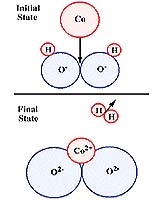 How does the process work? As a result, MRAM promises a day when computers would boot up instantly once turned on, rather than comparatively slowly while retrieving information from the hard drive. Major corporations have begun developing MRAM modules in hopes of generating robust nonvolatile memory in the next few years. But growing an atomically flat, ultrathin film of metal on top of any insulator material is a difficult feat. In a magnetic tunnel junction, an ultrathin layer of insulator, typically aluminum oxide with a thickness of less than or about 1 nanometer, is sandwiched between layers of magnetic metal, such as cobalt or nickel-iron. When current flows through the device, the magnetic orientation of the two metal layers can be switched, resulting in different values of the tunneling current. This creates an environment in which "bits" of computer memory can be stored. To achieve ferromagnetism, it was thought that thick layers of the top metal must be made. Obviously, thinner layers that require lower currents to switch the direction of magnetic fields would be more desirable. In 2000, Sandia solid-state theorist Dwight Jennison approached Scott Chambers, a chief scientist at Pacific Northwest National Laboratory, with a theory that the presence of hydroxyls -- in effect, water fragments -- would enhance the binding of metals to oxide surfaces. Jennison calculated that then certain metals would form flat films on sapphire (a phase of aluminum oxide). Using a special synthesis technique he created, Chambers and postdoctoral fellow Tim Droubay produced an atomically flat film of cobalt on hydroxylated sapphire. They found, as Jennison had suspected, that the cobalt accumulated in layer-by-layer fashion, rather than clustering to form islands. "Cobalt's interaction with oxide is so weak that it would normally ball up when deposited," says Jennison. "However, by changing the surface of the oxide, Scott discovered that cobalt atoms can cause the release of a hydrogen gas molecule and the cobalt atoms then become oxidized themselves -- that is, they link up with the newly available oxygens and end up strongly bound within the top layer of the oxide. These are the anchors." These metal atoms, embedded at scattered points within the top layer of the oxide, amount to about one anchor for every ten oxygen atoms in the top layer. These anchoring atoms bind other metallic atoms to themselves and to each other just above the oxide surface, forming a crystalline metallic layer. "Many advanced technologies rely on strong interfaces between metals and oxides," said Chambers, lead author of the Science paper. "These findings may provide the molecular insight industry needs to create better materials for microelectronics and sensors." The new technique uses equipment already in place in chip manufacturing plants. "For industry, a solution may be as simple as exposing the thin aluminum oxide films to a low pressure of water vapor before adding a final cobalt layer," said Chambers. The entire process may be done at room temperature, which is beneficial since it is often important to avoid high temperatures in manufacturing. PNNL postdoc Tim Droubay helped Chambers with the experiments. Jennison, who first found which chemical reactions would be energetically favorable, collaborated at Sandia with Thomas Mattsson, who has long experience in first-principle-based diffusion and reaction studies, and in computing critical reaction barriers. Their theoretical first principles calculations predicted some and validated other experimental results. Some of these calculations required work on Sandia's most powerful computers. The calculations provided insight into what reaction is taking place, where it occurs, the energy barrier for it to happen, and the time needed for completion vs. the time for arriving cobalt atoms to lose energy while in contact with the surface. If the reaction occurred slowly, the rapidly diffusing cobalt atoms would first find a growing island. However, because hydrogen molecules -- the lightest of all molecules -- are being made, the reaction can be on the order of tenths of a picosecond. This is well before the arriving cobalt atoms can assume the temperature of the substrate. Says Jennison, "Otherwise the experimental result would be impossible to explain. However, here we have a wonderful joining of theory and experiment." While the experiment was conducted using cobalt, Jennison's calculations predict the method also would be effective for iron and nickel, two other metals under consideration for MRAM, as well as metals such as copper, ruthenium, and rhodium. The latter two have applications in catalysis. Pacific Northwest National Laboratory is a DOE research facility and delivers breakthrough science and technology in the areas of environment, energy, health, fundamental sciences and national security. Battelle, based in Columbus, Ohio, has operated the laboratory for DOE since 1965. The Division of Material Science within the DOE's Office of Basic Energy Sciences supported the research at PNNL. Community Email This Article Comment On This Article Related Links Pacific Northwest National Laboratory Sandia National Laboratories SpaceDaily Search SpaceDaily Subscribe To SpaceDaily Express Space Technology News - Applications and Research