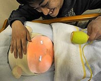 Japanese baby-bot with runny nose teaches parenting skillsTsukuba, Japan (AFP) March 10, 2010 It giggles and wiggles its feet when you shake its rattle, but will get cranky and cry from too much tickling: Meet Yotaro, a Japanese robot programmed to be as fickle as a real baby. The cuddly baby-bot looks unearthly with a pair of luminous blue eyes and oversized cheeks, but engineering students are hoping it will teach young people the pleasures of parenting as Japan faces a demographic ... read more |