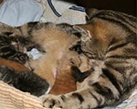 The Hague (AFP) July 18, 2008 A baby panda adopted by a domestic cat at Amsterdam's Artis zoo has died after choking on the milk of its foster mother, the zoo said Friday. "The little one was discovered lifeless on Thursday morning," it said in a statement. "A post-mortem revealed that its windpipe was filled with milk. It had choked to death." The red panda cub was born on June 30, but was rejected by its own mother along with a sibling who died soon thereafter. It was adopted by a zoo employee's pet cat who suckled the newborn with its own four kittens. "The cat had just had kittens and accepted the baby panda as a foster child," said the zoo statement. "As far as we know, this was the first time that a cat has adopted a baby panda." Red pandas, which are only slightly larger than domestic cats, are an endangered species found mostly in the eastern Himalayas. Many zoos worldwide have breeding programmes as only about 2,500 red pandas remain in the wild today. Community Email This Article Comment On This Article Share This Article With Planet Earth
