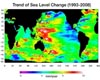 Pasadena CA (SPX) Aug 15, 2008Warming water and melting land ice have raised global mean sea level 4.5 centimeters (1.7 inches) from 1993 to 2008. But the rise is by no means uniform. This image, created with sea surface height data from the Topex/Poseidon and Jason-1 satellites, shows exactly where sea level has changed during this time and how quickly these changes have occurred. |
