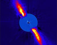 Paris, France (SPX) Nov 24, 2008 A team of French astronomers using ESO's Very Large Telescope have discovered an object located very close to the star Beta Pictoris, and which apparently lies inside its disc. With a projected distance from the star of only 8 times the Earth-Sun distance, this object is most likely the giant planet suspected from the peculiar shape of the disc and the previously observed infall of comets onto the star. It would then be the first image of a planet that is as close to its host star as Saturn is to the Sun. The hot star Beta Pictoris is one of the best-known examples of stars surrounded by a dusty 'debris' disc. Debris discs are composed of dust resulting from collisions among larger bodies like planetary embryos or asteroids. They are a bigger version of the zodiacal dust in our Solar System. Its disc was the first to be imaged - as early as 1984 - and remains the best-studied system. Earlier observations showed a warp of the disc, a secondary inclined disc and infalling comets onto the star. "These are indirect, but tell-tale signs that strongly suggest the presence of a massive planet lying between 5 and 10 times the mean Earth-Sun distance from its host star," says team leader Anne-Marie Lagrange. "However, probing the very inner region of the disc, so close to the glowing star, is a most challenging task." In 2003, the French team used the NAOS-CONICA instrument (or NACO [1]), mounted on one of the 8.2 m Unit Telescopes of ESO's Very Large Telescope (VLT), to benefit from both the high image quality provided by the Adaptive Optics system at infrared wavelengths and the good dynamics offered by the detector, in order to study the immediate surroundings of Beta Pictoris. Recently, a member of the team re-analysed the data in a different way to seek the trace of a companion to the star. Infrared wavelengths are indeed very well suited for such searches. "For this, the real challenge is to identify and subtract as accurately as possible the bright stellar halo," explains Lagrange. "We were able to achieve this after a precise and drastic selection of the best images recorded during our observations." The strategy proved very rewarding, as the astronomers were able to discern a feeble, point-like glow well inside the star's halo. To eliminate the possibility that this was an artefact and not a real object, a battery of tests was conducted and several members of the team, using three different methods, did the analysis independently, always with the same success. Moreover, the companion was also discovered in other data sets, further strengthening the team's conclusion: the companion is real. "Our observations point to the presence of a giant planet, about 8 times as massive as Jupiter and with a projected distance from its star of about 8 times the Earth-Sun distance, which is about the distance of Saturn in our Solar System [2]," says Lagrange. "We cannot yet rule out definitively, however, that the candidate companion could be a foreground or background object," cautions co-worker Gael Chauvin. "To eliminate this very small possibility, we will need to make new observations that confirm the nature of the discovery." The team also dug into the archives of the Hubble Space Telescope but couldn't see anything, "while most possible foreground or background objects would have been detected", remarks another team member, David Ehrenreich. The fact that the candidate companion lies in the plane of the disc also strongly implies that it is bound to the star and its proto-planetary disc. "Moreover, the candidate companion has exactly the mass and distance from its host star needed to explain all the disc's properties. This is clearly another nail in the coffin of the false alarm hypothesis," adds Lagrange. When confirmed, this candidate companion will be the closest planet from its star ever imaged. In particular, it will be located well inside the orbits of the outer planets of the Solar System. Several other planetary candidates have indeed been imaged, but they are all located further away from their host star: if located in the Solar System, they would lie close or beyond the orbit of the farthest planet, Neptune. The formation processes of these distant planets are likely to be quite different from those in our Solar System and in Beta Pictoris. "Direct imaging of extrasolar planets is necessary to test the various models of formation and evolution of planetary systems. But such observations are only beginning. Limited today to giant planets around young stars, they will in the future extend to the detection of cooler and older planets, with the forthcoming instruments on the VLT and on the next generation of optical telescopes," concludes team member Daniel Rouan. Only 12 million years old, the 'baby star' Beta Pictoris is located about 70 light-years away towards the constellation Pictor (the Painter). Share This Article With Planet Earth
