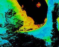 Greenbelt - Apr 22, 2003 In early 2002, a patch of "black water" spanning over 60 miles in diameter formed off southwestern Florida and contributed to severe coral reef stress and death in the Florida Keys, according to results published from research funded by NASA, the U.S. Environmental Protection Agency and the National Oceanic and Atmospheric Administration (NOAA). The "black water" contained a high abundance of toxic and non-toxic microscopic plants. Chuanmin Hu and other colleagues at the Institute for Marine Remote Sensing of the University of South Florida (USF), St. Petersburg, Fla., and colleagues from the Florida Fish and Wildlife Conservation Commission (FFWCC) and the University of Georgia, co-authored an article on this phenomenon that appeared as the cover story of a recent issue of the American Geophysical Union's Geophysical Research Letters. "The water appeared black in satellite imagery because the concentration of the microscopic plants and other dissolved matters were high," Hu said. Because plants and dissolved matter absorb sunlight, they reduce the amount of light normally reflected from the ocean. When a red-tide bloom occurs the water takes on various hues of red or brown. While not all microscopic plants contribute to red tides, the darker hue created by both the plankton and the harmful algal blooms made the water appear black when seen from the satellite. When Hu and his colleagues examined the data collected by divers from the dark water area in the Florida Keys, they discovered a 70 percent decrease in stony coral cover, a 40 percent reduction of coral species, and a near-elimination of sponge colonies at two reef sites after the dark water passed. By examining satellite images and field survey data, the authors concluded that the coral reef ecosystem was stressed by microscopic organisms and toxins contained in the dark water. The "black water"event caused alarm among local fishermen, divers, and the public, as the color of the water was unusual and fish seemed to avoid this large area of dark water. Satellite instruments such as the Sea-viewing Wide Field-of-view Sensor (SeaWiFS) aboard Orbimage's SeaStar satellite and the Moderate Resolution Imaging Spectroradiometer (MODIS) aboard NASA's Terra and Aqua satellites provide information on ocean color that allows scientists to monitor the health of the water and the shallow benthic (ocean bottom) environment. The SeaWiFS and MODIS measurements of the dark water led to a number of investigations to help clarify the issues and to provide answers to the public's concerns. During January 2002, SeaWiFS detected the dark-colored water in the Florida Bight, just southwest of the Everglades. In fall 2001, the SeaWiFS images showed an extensive red tide off Florida's central west coast, near Charlotte Harbor. Red tides occur every year off Florida and are known to cause fish kills, coral stress and mortality, and skin and respiratory problems in humans. They are caused by high concentration of microscopic plants called dinoflagellates. Other microorganisms called cyanobacteria can also cause harmful algal blooms. The waters containing this red tide migrated to the south along the coast. Winter storms caused large amounts of fresh water to drain from the Everglades into Florida Bight (the curve in the shoreline from the Keys north to Everglades National Park on the mainland), carrying high levels of nutrients such as silicate, phosphorus, and nitrogen to the sea. These caused a bloom of the microscopic marine plants known as diatoms in the same patch. The bloom turned the water dark and the black waterpatch re-circulated for several months in a slow clockwise motion off southwest Florida in the Florida Bight. Slowly, the dark water drifted farther south and toward the Florida Keys. By May 2002, the "black water" had moved through passages in the Florida Keys, dispersing into the Atlantic and the Gulf Stream. Co-authors on this research article included Serge Andrefouet and Frank E. Muller-Karger of USF; Keith E. Hackett, Michael K. Callahan, and Jennifer L. Wheaton of FFWCC, St. Petersburg, Fla.; and James W. Porter of the University of Georgia, Athens, Ga. NASA funded part of this research as part of its Earth Science mission to understand and protect our home planet. NASA's Earth Science Enterprise is dedicated to understanding the Earth as an integrated system and applying Earth System Science to improve prediction of climate, weather, and natural hazards using the unique vantage point of space. Community Email This Article Comment On This Article Related Links More images SeaWiFS MODIS SpaceDaily Search SpaceDaily Subscribe To SpaceDaily Express Earth Observation News - Suppiliers, Technology and Application
