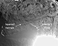 for NASA Science News Huntsville AL (SPX) Sep 27, 2007 The flash! The dazzle! The front page of the New York Times! Two years ago, NASA's Deep Impact spacecraft dropped an 820 lb copper projectile onto Comet Tempel 1, unleashing an explosion that made headlines around the world. Exploding comets tend to have that effect. But how many people know what happened after the blast? The surprising answer is none--not even NASA. Deep Impact's prime mission was to punch a hole in Tempel 1 and look inside, giving researchers their first glimpse of a comet's internal structure. But "we were never able to see the crater because the cloud of debris was so thick," says Michael New of NASA Headquarters. Why didn't Deep Impact wait until the dust cleared? It couldn't. The mission was designed from the beginning as a high-speed flyby, giving extra velocity to the "bullet." Orbiting was not an option. Carried by its own momentum, Deep Impact sailed away before the cloud had time to dissipate. Take 2: NASA is going back for a second look. "We're sending another spacecraft back to Tempel 1, the Stardust probe," says New. Stardust is famous for its January 2004 flyby of Comet Wild 2. Severely buffeted by jets of gas and debris flowing from the comet, Stardust nevertheless managed to snatch thousands of samples of comet dust and return them to Earth for analysis. "Stardust is one of the great successes of NASA's Discovery program," says New. (The Discovery program launches innovative, inexpensive spacecraft every 18-to-24 months on cutting edge missions. Deep Impact is also part of this program.) At first, Stardust was simply retired, sailing the void with nothing to dobut now it is being recycled as "Stardust-NExT," short for New Exploration of Tempel 1. Planetary science professor Joe Veverka of Cornell University is the mission's principal investigator. "We're very excited to go back," says Veverka. "Stardust is due to reach Comet Tempel 1 in 2011. By then the debris cloud will be long gone and we should get a clear view of the crater." Peering into the crater, however, "is only half the story," says Veverka. Before the cloud spoiled the view, Deep Impact's cameras recorded some surprising things. For one, the comet is ringed by a strangely-layered "sedimentary" terrain. There are no rivers on comets, so what causes these features? "Good question," says Veverka. One possibility: comets might be formed in layers. "Imagine two small proto-comets smashing into one another, sticking together and flattening like pieces of playdough," he says. Or maybe the layers are created via some form of hot erosion when the comet swings past the sun every 6.5 years. "We just don't know." Stardust will gather important clues. "We're returning to the comet almost exactly one orbit--that is, one comet-year--after the first visit. This gives us a chance to see how solar heating might have altered Tempel 1's face." Another surprise was landslides. "Deep Impact saw an enormous flow of smooth, powdery material" completely covering about a kilometer of underlying terrain, says Veverka. This feature is as mysterious as the layers, but it could explain one thing: why Deep Impact's debris cloud was so troublesome. "We might have hit a patch of deep powder," adds New. "Fine particles tend to make big clouds that are hard to see through." "This is why we explore," adds Veverka. "Tempel 1 is an amazing comet." Veverka notes that recycling a mission like Stardust is cheaper than sending a whole new spacecraft. "Stardust-NExT costs less than 15% of a full-up Discovery mission." "Giving new assignments to veteran spacecraft represents not only creative thinking and planning, but also a prime example of getting more from the budget we have," agrees Alan Stern, associate administrator of NASA's Science Mission Directorate. Deep Impact is being recycled, too. "We're using Deep Impact for two new projects," explains New. One is called DIXI (Deep Impact Extended Investigation): "Deep Impact will fly by Comet Boethin in December 2008 for a close-up investigation of the comet's nucleus." The second is EPOCh (Extrasolar Planet Observation and Characterization): "Cameras on Deep Impact will target nearby stars with known giant planets. By watching these planets transit (pass in front of) their stars, Deep Impact will be able to determine whether they possess rings and/or moons." For this work, EPOCh's sensitivity will exceed that of existing ground and space-based observatories, possibly leading to the discovery of new Earth-sized planets. No crater? No problem. Says New: "You can't keep a good Discovery mission down." Community Email This Article Comment On This Article Related Links Deep Impact Asteroid and Comet Mission News, Science and Technology