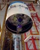 Kourou, French Guiana (SPX) Jun 21, 2006Assembly of the Ariane 5 ECA for Arianespace's next dual-satellite mission marked another milestone this week when the launcher received its cryogenic ESC-A upper stage. The upper stage, supplied by EADS Space Transportation, is an element of the upgraded propulsion system that provides increased lift capabilities for the Ariane 5 ECA. |