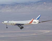 Chicago IL (SPX) Jul 27, 2007 The innovative Boeing lended Wing Body (BWB) research aircraft -- designated the X-48B -- flew for the first time last week at NASA's Dryden Flight Research Center at Edwards Air Force Base in California. The 21-foot wingspan, 500-pound unmanned test vehicle took off for the first time at 8:42 a.m. Pacific Daylight Time on July 20 and climbed to an altitude of 7,500 feet before landing 31 minutes later. "We've successfully passed another milestone in our work to explore and validate the structural, aerodynamic and operational efficiencies of the BWB concept," said Bob Liebeck, BWB program manager for Boeing Phantom Works, the company's advanced R and D unit. "We already have begun to compare actual flight-test data with the data generated earlier by our computer models and in the wind tunnel." The X-48B flight test vehicle was developed by Boeing Phantom Works in cooperation with NASA and the U.S. Air Force Research Laboratory to gather detailed information about the stability and flight-control characteristics of the BWB design, especially during takeoffs and landings. Up to 25 flights are planned to gather data in these low-speed flight regimes. Following completion of low-speed flight testing, the X-48B likely will be used to test the BWB's low-noise characteristics, as well as BWB handling characteristics at transonic speeds. Two X-48B research vehicles have been built. The vehicle that flew on July 20 is Ship 2, which also was used for ground and taxi testing. Ship 1, a duplicate of Ship 2, completed extensive wind tunnel testing in 2006 at the Old Dominion University NASA Langley Full-Scale Tunnel in Virginia. Ship 1 will be available for use as a backup during the flight test program. Three turbojet engines enable the composite-skinned research vehicle to fly up to 10,000 feet and 120 knots in its low-speed configuration. Modifications would need to be made to the vehicle to enable it to fly at higher speeds. The unmanned aircraft is remotely piloted from a ground control station in which the pilot uses conventional aircraft controls and instrumentation while looking at a monitor fed by a forward-looking camera on the aircraft. The Boeing BWB design resembles a flying wing, but differs in that the wing blends smoothly into a wide, flat, tailless fuselage. This fuselage blending helps to get additional lift with less drag compared to a circular fuselage. This translates to reduced fuel use at cruise conditions. And because the engines mount high on the back of the aircraft, there is less noise inside and on the ground when it is in flight. "While Boeing constantly explores and applies innovative technologies to enhance its current and next-generation products, the X-48B is a good example of how Boeing also looks much farther into the future at revolutionary concepts that promise even greater breakthroughs in flight," said Bob Krieger, Boeing chief technology officer and president of Phantom Works. While a commercial passenger application for the BWB concept is not in Boeing's current 20-year market outlook, the Advanced Systems organization of Boeing Integrated Defense Systems' (IDS) is closely monitoring the research based on the BWB's potential as a flexible, long-range, high-capacity military aircraft. "The BWB concept holds tremendous promise for the future of military aviation as a multi-purpose military platform in 15 to 20 years," said Darryl Davis, Boeing IDS Advanced Systems vice president and general manager of Advanced Precision Engagement and Mobility Systems. "Its unique design attributes will result in less fuel burn and a greatly reduced noise footprint, which are important capabilities to offer our Air Force and mobility customers." NASA's participation in the project is focused on fundamental, edge-of-the-envelope flight dynamics and structural concepts of the BWB. Along with hosting the X-48B flight test and research activities, NASA Dryden provided engineering and technical support -- expertise garnered from years of operating cutting-edge unmanned air vehicles. The two X-48B research vehicles were built by Cranfield Aerospace Ltd., in the United Kingdom, in accordance with Boeing requirements. Community Email This Article Comment On This Article Related Links Boeing Aerospace News at SpaceMart.com