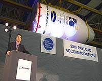 St. Louis MO (SPX) Dec 18, 2006 Boeing Commercial Space Company Thursday celebrated the transfer of the 25th Payload Accommodations package to Sea Launch Company. The Payload Accommodations package consists of several elements. The high-tech composite Payload Accommodations Fairing is a conical shell measuring 40 feet long and 14 feet wide that protects a satellite during liftoff from a floating launch platform positioned on the Equator. The fairing is jettisoned once it is above the atmosphere and falls to the ocean. The package also includes the payload support structure, an interface skirt, a spacecraft adapter and the avionics necessary to operate and track launch activities within the payload system. In an employee celebration at the Composites, Fabrication and Assembly Center in Seattle, Ken Heinly, Boeing director of Launch Products and Services and BCSC vice president, hailed employees' reputation for quality, innovation and teamwork. "This is a team that has set goals that are about as lofty as one can get and has reached them every time," Heinly said. Sea Launch President and General Manager Rob Peckham also congratulated the team on its achievement, saying, "The sheer excellence of your performance has been an important component of the success of Sea Launch over the past 10 years. This extraordinary partnership has achieved 20 consecutive successful launches and 22 successes of 23 launch attempts overall since our first mission eight years ago." BCSC provides flight design services and operational hardware to support Sea Launch missions. In addition to the Payload Accommodations package, BCSC performs the mission integration activities necessary to ensure compatibility between the Sea Launch system and the customer satellite to include mission design, system integration, interface verification and launch operations support. BCSC personnel also perform post-flight data review and analysis. BCSC's work represents one of more than a dozen programs at Boeing Integrated Defense Systems' Puget Sound location, which includes facilities in Kent, Seattle, Renton and Auburn, Wash., employing more than 8,000. Sea Launch Company, LLC, is an international partnership of American, Russian, Ukrainian and Norwegian businesses. The Sea Launch equatorial launch site provides the most direct route to geostationary orbit, yielding maximum lift capacity for increased payload mass or extended spacecraft life. BCSC, a Boeing subsidiary, serves as both a partner and a contractor to Sea Launch. Community Email This Article Comment On This Article Related Links Integrated Defense Systems Launch Pad at Space-Travel.com Launch Pad at Space-Travel.com