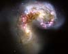 Paris, France (ESA) Oct 18, 2006A new Hubble image of the Antennae galaxies is the sharpest yet of this merging pair of galaxies. As the two galaxies smash together, thousand of millions of stars are born, mostly in groups and clusters of stars. The Universe is an all-action arena for some of the largest, most slowly evolving and surprising processes known to mankind. |