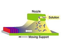 Pittsburgh PA (SPX) May 10, 2005 Carnegie Mellon University scientists have harnessed an experimental technology to produce polymer films with long-range-ordered nanostructure and easily convert them into highly ordered "nanocarbon arrays." Called zone casting, this technology could revolutionize the way industrial nanoelectronic components are made. The research findings are in press with the Journal of the American Chemical Society. "We've found that zone casting produces highly organized polymer films that could serve as templates for creating ordered nanopatterns with other materials," said Tomasz Kowalewski, an assistant professor of chemistry who is leading the Carnegie Mellon team. "The technique could, for example, help produce data storage arrays with increased density and reliability." Kowalewski also expects that zone casting could produce materials for other nanoelectronic devices, like field emission arrays. To create long-range-ordered films, Kowalewski's team used "block copolymers," which are made of long-chain molecules with distinct "blocks" of chemically different repeating units. To create self-assembling nanostructures from block copolymers, Kowalewski used molecules with blocks that naturally repel one another, like oil and water. Such copolymer strands spontaneously assume energetically favorable structures, like balls, cylinders or sheets. In recent years, scientists and engineers have sought to use these unusual structures in electronics and data storage settings. In the latter case, thin block copolymer films are used as lithographic masks to pattern ultra-high density data storage media. However, nanostructures spontaneously formed by block copolymers usually lack long-range order necessary for such applications. Thus, numerous labs are pursuing various strategies to encourage block copolymers into ordering themselves over a large scale. "Zone casting appears to be particularly well-suited to achieve this goal with a variety of block copolymers," Kowalewski said. In zone casting, a nozzle ejects a solution onto an advancing surface, or moving support. By modifying the temperature, the speed of the advancing surface and other factors, researchers already have been able to control the alignment and solidification of molecular crystals used to make organic electronic devices. The zone-casting technique was originally developed by scientists from the Polish Academy of Sciences. The Carnegie Mellon team hypothesized that a similar approach also could help establish and control long-range order of block copolymer domains. Using this technique, doctoral student Chuanbing Tang produced thin films of block copolymers made of polyacrylonitrile (PAN) and poly(n-butyl acrylate) (PBA) on a moving chip. The films consisted of alternating layers of PAN and PBA, and these layers were oriented perpendicular to the surface and to the direction of the advancing chip. Then, using a method developed earlier in the Kowalewski lab, Tang used a high-temperature treatment to convert the long-range-ordered polymer films into nanostructured carbon, while remarkably preserving the long-range order. "Zone casting offers the perfect way to direct higher order assembly so that we can pre-organize carbon precursor structures," Kowalewski said. "More important, our ongoing work indicates that we will be able to use it with other copolymer systems, forming different structures, such as hexagonally packed arrays of vertical cylinders." These latter systems are of particular interest as masks for lithographic patterning of magnetic materials for data storage arrays. The research was supported by the National Science Foundation and the Controlled Radical Polymerization Consortium at Carnegie Mellon. Community Email This Article Comment On This Article Related Links MCS SpaceDaily Search SpaceDaily Subscribe To SpaceDaily Express Nano Technology News From SpaceMart.com Computer Chip Architecture, Technology and Manufacture