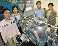 Berkeley CA (SPX) Nov 02, 2004 An ion-beam system that simultaneously combines focused beams of electrons and positive ions promises to improve the versatility, efficiency, and economy of this important technology. The new system was developed by researchers at the Department of Energy's Lawrence Berkeley National Laboratory, who report its principles and applications in the November 8, 2004 issue of Applied Physics Letters. Focused ion beams are important in the semiconductor industry, where they are used to carve structures with dimensions measured in billionths of a meter, repair defects in masks used for photolithography, isolate and analyze elements of integrated circuits, "dope" semiconductors with specific atomic species, and perform other tasks. Focused ion beams have also been used to create images of surfaces, pattern thin films for dense magnetic storage, analyze the chemical content of samples, and investigate biological systems. And because ion beams can shape materials with microscopic precision, they can micromachine miniature medical implants, such as cardiac stents that hold weak blood vessels open. Complicating these applications, however, is the fact that "problems arise when positive ions are used for imaging or micromachining insulating materials," says Qing Ji, who authored the Applied Physics Letters report with her colleagues Lili Ji, Ye Chen, and Ka-Ngo Leung. Qing Ji is a postdoctoral fellow in the Center for Imaging and Mesoscale Structures at Harvard University and a guest at Berkeley Lab. Coauthors Lili Ji and Chen are with Berkeley Lab's Accelerator and Fusion Research Division (AFRD) and the Department of Nuclear Engineering at the University of California at Berkeley, as is Leung, who heads the Plasma and Ion Source Technology Group in AFRD. The trouble with using positive-ion beams on insulating samples, Ji explains, is that "the target material is charged by the positive ions; as the positive charge builds up on the sample it repels the ions and defocuses the beam." Traditionally two methods have been used to keep a nonmetallic sample from acquiring charge from a positive-ion beam, she says. "One method is to pass the beam through a gas cell, where it is partially neutralized before it reaches the sample by acquiring electrons from the gas. The other is to train a separate beam of electrons on the sample." Both have significant disadvantages. A gas cell may require too much distance between the beam accelerator and the sample, which can interfere with beam focusing. And a separate electron beam requires a separate accelerator, which must be precisely aligned with the ion beam at all times. If the ion beam is scanning the sample, this can be difficult; if multiple ion beamlets are being directed at the sample simultaneously, it's virtually impossible. "In fact our new beam system was inspired by one of our group's previous inventions, a multiple-ion-beam system that can steer hundreds of beamlets simultaneously," says Ji. "The device had no room for a neutralizing gas cell, and there was no way to use a separate electron beam to neutralize the sample." A new way to neutralize ion beams The group came up with a novel solution: instead of a liquid-metal ion source, standard in many focused ion beam devices, the new system uses two chambers in which plasma is generated by radio-frequency electromagnetic fields, which separate gas molecules into their component electrons and positive ions. The two chambers are divided by an arrangement of electrodes that allows only high-energy electrons to exit the first chamber and at the same time keeps positive ions out. In the second chamber an ion beam is formed and accelerated by a lower voltage, which does not impede the high-energy electron beam. Both beams combine in a single mixed beam and are extracted by the accelerator column. The self-neutralizing, mixed beam stays tight on its way to the target, because with electrons present there is little "space charge" - the positive ions do not push one another apart - nor does it charge the sample upon striking it. The combined-beam system can accelerate numerous species of ions, including noble gases like argon, metals like manganese, and even molecular ions like carbon-60 "buckyballs," useful in biological studies because of their stability. In proof-of-principle experiments, the researchers used perforated stencil masks as the forward electrode of the accelerator, causing the beam to transfer the stencil's distinct shapes to the sample. The dimensions of the shapes could be altered dramatically by establishing an electrostatic field between the mask and the sample. The researchers used argon ions to sputter stainless steel foils with an arc shape, the same length but more than twice as narrow as the aperture in the mask. In another experiment with an oxygen-ion beam, they cut trenches into a graphite sample three times narrower than the mask aperture. The same technique can be used with three-dimensional masks, for example a cylindrical mask that accelerates surrounding electron and ion plasma to carve out features in a cardiac stent. Ka-Ngo Leung points out the advantages: "There's no need for scanning, no need to rotate the target. Unlike the way cardiac stents are manufactured now - one at a time, machined by a laser - ion-beam imprinting would allow hundreds or thousands of stents to be produced with just one shot." Other current industrial applications that could benefit from imprinting with electron/positive-ion beams include, says Leung, "sound suppressors for jet engines that require millions of holes, which could be produced in one shot. Or cutting the many trenches needed to increase surface area in hydrogen fuel-cell electrodes, which could also be done in one shot." In these and many other industrial applications involving micromachining, most of which currently employ laser systems, combined electron/positive-ion beams offer an economical way to greatly i