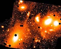 Cleveland OH (SPX) Sep 22, 2005 Case Western Reserve University astronomers have captured the deepest wide-field image ever of the nearby Virgo cluster of galaxies, directly revealing for the first time a vast, complex web of "intracluster starlight" - nearly 1,000 times fainter than the dark night sky - filling the space between the galaxies within the cluster. The streamers, plumes and cocoons that make up this extremely faint starlight are made of stars ripped out of galaxies as they collide with one another inside the cluster, and act as a sort of "archaeological record" of the violent lives of cluster galaxies. The Virgo image was captured through Case's newly refurbished 24-inch Burrell Schmidt telescope, built in the 1930s and located at the Kitt Peak National Observatory in Arizona. Over the course of 14 dark moonless nights, the researchers took more than 70 images of the Virgo Cluster, then used advanced image processing techniques to combine the individual images into a single image capable of showing the faint intracluster light. "When we saw all this very faint starlight in the image, my first reaction was WOW!," project leader Chris Mihos said. "Then I began to worry about all the things we could have done wrong." Many effects, such as stray light from nearby stars, from instruments in the observatory and even from the changing brightness of the night sky could all contaminate the image and lead to inaccurate results. "But as we corrected for each of these contaminants, not only did the faint starlight not disappear, it became even more apparent. That's when we knew we had something big." The new image gives dramatic evidence of the violent life and death of cluster galaxies. Drawn together into giant clusters over the course of cosmic time by their mutual gravity, galaxies careen around in the cluster, smashing into other galaxies, being stripped apart by gravitational forces and even being cannibalized by the massive galaxies which sit at the cluster's heart. The force of these encounters literally pulls many galaxies apart, leaving behind ghostly streams of stars adrift in the cluster, a faint tribute to the violence of cluster life. "From computer simulations, we've long suspected this web of intracluster starlight should be there," says Mihos, associate professor of astronomy at Case, "but it's been extremely hard to map it out because it's so faint." Mihos and graduate students Craig Rudick (Case) and Cameron McBride (University of Pittsburgh, and former Case undergraduate) have developed computer simulations that track how clusters of galaxies evolve over time, to study exactly how this intracluster starlight is created. "With the data from the telescope, we see how a cluster looks today," Mihos explains. "But with computer simulations, we can watch how a cluster evolves over 10 billion years of time. By comparing the simulation to the real features we now see in Virgo, we can learn how the cluster formed and what happened to its many galaxies." For example, the fact that the intracluster light in Virgo is so complex and irregular lends credence to the theory of "hierarchical assembly," where clusters grow sporadically when groups of galaxies fall into the cluster, rather than through the smooth, slow addition of galaxies one by one. To detect the faint intracluster light, upgrades were needed to Case's Burrell Schmidt telescope, originally part of the original Warner and Swasey Observatory in Cleveland until its move to Kitt Peak in 1979. The improvements included the installation of a new camera system and upgrades to the telescope to make it more structurally stable and reduce unwanted scattered light. "It's like 'The Little Engine that Could'," says Case astronomer Paul Harding, who directed the refurbishment of the telescope. "It's the smallest telescope on the mountain, but with these upgrades it's capable of some pretty incredible science." The telescope's wide field of view -- enough to fit three full moons across the image -- proved crucial to the project, allowing the team to map out the intracluster light over a much larger part of the Virgo Cluster than would be possible using larger telescopes with their much smaller fields of view. The Virgo Cluster of galaxies -- so named because it appears in the constellation of Virgo -- is the nearest galaxy cluster to the Earth, at a distance of approximately 50 million light years. The cluster contains more than 2,000 galaxies, the brightest of which can be seen with the aide of a small telescope. The Case findings are reported in the paper "Diffuse Light in the Virgo Cluster" to be published in the September 20th issue of The Astrophysical Journal Letters. Along with Mihos team researchers included Case astronomers Heather Morrison and Paul Harding, and John Feldmeier, a National Science Foundation Fellow at the National Optical Astronomy Observatory in Tucson, Ariz. (and formerly of Case). Community Email This Article Comment On This Article Related Links SpaceDaily Search SpaceDaily Subscribe To SpaceDaily Express Stellar Chemistry, The Universe And All Within It