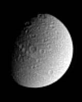 Cassini spied a crater-covered Dione in this image from Dec. 8, 2004. The bright, wispy streaks for which Dione is known are located on the moon's night side to the west. The streaky terrain was imaged at very high resolution by Cassini during its flyby of Dione on Dec. 14, 2004. Dione is 1,118 kilometers across. This view shows mostly the trailing hemisphere of Dione. The image was taken in visible light with the Cassini spacecraft narrow angle camera at a distance of 2.5 million kilometers from Dione and at a Sun-Dione-spacecraft, or phase, angle of 58 degrees. North is up. The image scale is 15 kilometers (9 miles) per pixel. The image has been magnified by a factor of two and contrast-enhanced to aid visibility of surface features. Community Email This Article Comment On This Article Related Links Cassini-Huygens at JPL Cassini Imaging Team SpaceDaily Search SpaceDaily Subscribe To SpaceDaily Express Explore The Ring World of Saturn and her moons Jupiter and its Moons The million outer planets of a star called Sol News Flash at Mercury