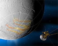 Pasadena CA (SPX) Aug 08, 2008 Fractures, or "tiger stripes," where icy jets erupt on Saturn's moon Enceladus will be the target of a close flyby by the Cassini spacecraft on Monday, Aug. 11. Cassini will zoom past the tiny moon a mere 50 kilometers (30 miles) from the surface. Just after closest approach, all of the spacecraft's cameras -- covering infrared wavelengths, where temperatures are mapped, as well as visible light and ultraviolet -- will focus on the fissures running along the moon's south pole. That is where the jets of icy water vapor emanate and erupt hundreds of miles into space. Those jets have fascinated scientists since their discovery in 2005. "Our main goal is to get the most detailed images and remote sensing data ever of the geologically active features on Enceladus," said Paul Helfenstein, a Cassini imaging team associate at Cornell University in Ithaca, NY. "From this data we may learn more about how eruptions, tectonics, and seismic activity alter the moon's surface. We will get an unprecedented high-resolution view of the active area immediately following the closest approach." Seeing inside one of the fissures in high resolution may provide more information on the terrain and depth of the fissures, as well as the size and composition of the ice grains inside. Refined temperature data could help scientists determine if water, in vapor or liquid form, lies close to the surface and better refine their theories on what powers the jets. Imaging sequences will capture stereo views of the north polar terrain, and high resolution images of the south polar region will begin shortly after closest approach to Enceladus. The image resolution will be as fine as 7 meters per pixel (23 feet) and will cover known active spots on three of the prominent "tiger stripe" fractures. In addition to mapping the moon's surface in visible light as well as infrared and ultraviolet light, Cassini will help determine the size of the ice grains and distinguish other elements mixed in with the ice, such as oxygen, hydrogen, or organics. "Knowing the sizes of the particles, their rates and what else is mixed in these jets can tell us a lot about what's happening inside the little moon," said Amanda Hendrix, Cassini ultraviolet imaging spectrograph team member at NASA's Jet Propulsion Laboratory, Pasadena, Calif. Other instruments will measure the temperatures along the fractures, which happen to be some of the hottest spots on the moon's surface. "We'd like to refine our numbers and see which fracture or stripe is hotter than the rest because these results can offer evidence, one way or the other, for the existence of liquid water as the engine that powers the plumes," said Bonnie Buratti of JPL, team member on Cassini's visual and infrared mapping spectrometer. Cassini discovered evidence for the geyser-like jets on Enceladus in 2005, finding that the continuous eruptions of ice water create a gigantic halo of ice and gas around Enceladus, which helps supply material to Saturn's E-ring. This marks Cassini's second flyby of Enceladus this year. During Cassini's last flyby of Enceladus in March, the spacecraft snatched up precious samples and tasted comet-like organics inside the little moon. Two more Enceladus flybys are coming up in October, and they may bring the spacecraft even closer to the moon. The Oct. 9 encounter is complimentary to the March one, which was optimized for sampling the plume. The Oct. 31 flyby is similar to this August one, and is again optimized for the optical remote sensing instruments. Community Email This Article Comment On This Article Share This Article With Planet Earth