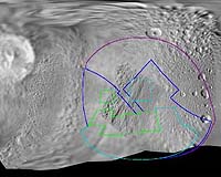 Pasadena CA (JPL) Sep 21, 2005 This map of the surface of Saturn's moon Tethys illustrates the regions that will be imaged by Cassini during the spacecraft's close flyby of the moon on Sept. 24, 2005. At closest approach, the spacecraft is expected to pass approximately 1,500 kilometers (930 miles) above the moon's surface. Tethys is 1,071 kilometers (665 miles) across. The colored lines delineate the regions that will be imaged at differing resolutions, listed in the legend at bottom. The new high-resolution coverage will reveal details on the Saturn-facing hemisphere of Tethys, including parts of the giant Ithaca Chasma canyon system. Imaging scientists also are hoping to obtain images of an ancient ridge east of Ithaca Chasma, as well as a section of terrain just west of the giant rift that appeared to be unusually smooth in NASA Voyager images. This flyby is also focused on gathering high-resolution imaging data of the moon's southern polar region. The map was made from images obtained by both the Cassini and Voyager spacecraft. Community Email This Article Comment On This Article Related Links Cassini-Huygens at JPL Cassini Imaging Team SpaceDaily Search SpaceDaily Subscribe To SpaceDaily Express Explore The Ring World of Saturn and her moons Jupiter and its Moons The million outer planets of a star called Sol News Flash at Mercury