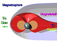 Paris, France (ESA) Apr 13, 2007 Cluster is providing new insights into the working of a 'space tsunami' that plays a role in disrupting the calm and beautiful aurora, or northern lights, creating patterns of auroral dances in the sky. Generally seen in high-latitude regions such as Scandinavia or Canada, aurorae are colourful curtains of light that appear in the sky. Caused by the interaction of high-energy particles brought by the solar wind with Earth's magnetic field, they appear in many different shapes. Early in the evening, the aurora often forms a motionless green arc that stretches across the sky in the east-west direction. Colourful dancing auroral forms are the results of disturbances known as 'substorms' taking place in Earth's magnetosphere. These perturbations can affect our daily lives, in particular by affecting the reception of GPS signals. Thus, understanding the physical processes involved is important to our routine life and security. These substorms typically last one to two hours and are three-dimensional physical phenomena spread over altitudes from 100 to 150 000 kilometres. Trying to understand such complex physical processes with a single scientific spacecraft is like trying to predict the behaviour of a tsunami with a single buoy in an ocean. That is why the simultaneous use of several satellites, like the Cluster constellation, is necessary to understand these events. Currently, there are two competing theoretical models to describe these substorms or space tsunamis. The first one is called the 'Current-Disruption' model, while the second one is the 'Near Earth Neutral Line Model'. Using data from the four Cluster spacecraft, a group of scientists from both sides of the Atlantic were able to confirm that the behaviour of some substorms is consistent with the Current Disruption model. A substorm develops and builds up in different stages, and it is the detailed study of one of these stages that helps us to understand which of the two models apply. For example, in the late stage of substorm development, auroral disturbances move towards the poles, suggesting that the energy source for auroras and substorms moves away from Earth. Previous satellite observations have found that, during this late stage, the flows of plasma (a gas of charged particles populating Earth's magnetosphere) in the magnetotail exhibit a reversal in direction. In recent years it was generally thought that a flow reversal region is where magnetic reconnection takes place, that is where the energy of the magnetic field is converted into particle energy (dissipation effect), resulting in high-speed plasma flows that hurl towards Earth, like space tsunamis. Detailed analysis of data obtained by the Cluster satellites while crossing such a region in the magnetotail, where flows of plasma exhibit a reversal in direction, has been reported by the team of Dr Tony Lui, a scientist of the Applied Physics Laboratory at the John Hopkins University, Maryland, USA, Co-Investigator of the Research with Adaptive Particle Imaging Detectors (RAPID) high-energy particles experiment on Cluster, and lead author of the study. Thanks to the unique capability of Cluster to perform simultaneous multipoint measurements, the scientists were able to derive several physical parameters never before estimated for such a flow reversal region. By comparing the directions of the electric current and the electric field in the magnetosphere it is possible to understand whether the cause of the flow reversal is a dissipation effect (where magnetic field energy converted to particle energy) or a dynamo effect (where particle energy is converted to magnetic field energy). For this case study, the Cluster scientists observed that features associated with flow reversal are actually very complex, consisting of both dissipation and dynamo effects in localised sites. This result shows that the plasma turbulence disrupts the local electric current. "The features we observed are consistent with the current disruption model. However, it is unclear how general these findings are. More events will be examined in the future," said Dr Lui. "The magnetic substorm phenomenon is a hot topic of research," added Philippe Escoubet, Cluster and Double Star project scientist for ESA. "This new Cluster result will certainly contribute to the on-going scientific debate and foster research cooperation with scientists involved in the newly launched NASA Time History of Events and Macroscale Interactions during Substorms (THEMIS), a mission specifically dedicated to studying substorms." The findings appear in the paper, "Cluster observation of plasma flow reversal in the magnetotail during a substorm", published in Annales Geophysicae 9 August 2006. Lui, A. T. Y., Y. Zheng, Y. Zhang, H. R�me, M. W. Dunlop, G. Gustafsson, S. B. Mende, C. Mouikis, and L. M. Kistler Community Email This Article Comment On This Article Related Links Cluster overview Double Star overview SOHO overview Solar Orbiter Space weather Solar Science News at SpaceDaily Solar Science News at SpaceDaily