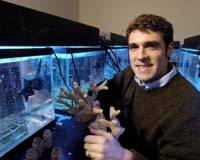 Baltimore MD (SPX) Jul 07, 2006 Leopards may not be able to change their spots, but corals can change their skeletons, building them out of different minerals depending on the chemical composition of the seawater around them. That's the startling conclusion drawn by a Johns Hopkins University marine geologist, writing in the July issue of the journal Geology. Postdoctoral fellow Justin Ries and his collaborators say this is the first known case of an animal altering the composition of its skeleton in response to change in its physical environment. The aquatic animal's sensitivity to such changes poses questions about its evolutionary history, as well as the future of the ecologically important coral reefs that it builds, Ries said, especially at a time when seawater is changing in response to global warming and the buildup of carbon dioxide in the atmosphere. A 2005 Ph.D. graduate of Johns Hopkins, Ries collaborated on the research with his dissertation advisors, Steven M. Stanley (now of the University of Hawaii) and Lawrence A. Hardie, professor in the Morton K. Blaustein Department of Earth and Planetary Sciences at Johns Hopkins. Reefs are large underwater structures of coral skeletons, made from calcium carbonate secreted by generation after generation of tiny coral polyps over sometimes millions of years of coral growth in the same location. The team showed that corals can switch from using aragonite to another mineral, calcite, in making the calcium carbonate. They make that switch in response to decreases in the ratio of magnesium to calcium in seawater, Ries said. That ratio has changed dramatically over geologic time. "This is intriguing because, until now, it was generally believed that the skeletal composition of corals was fixed," he said. Ries spent two months growing three species of modern scleractinian corals (the major reef-building corals in today's seas) in seawater formulated at six different chemical ratios that have existed throughout the 480-million-year history of corals. He concocted this "artificial seawater" using "recipes" provided by Hardie, who several years ago discovered that the magnesium-calcium ratio in seawater has vacillated throughout geologic history between a low of 1.0 and today's 5.2, changing due to chemical reactions between seawater brine and rising magma along the ocean floor. Ries placed his artificial seawaters in 10-gallon glass tanks, then added fragments of the three species of Caribbean reef-building corals. These were replete with colonies of polyps, which had spent the previous month in "equilibration tanks." Ries adjusted the chemistry of those tanks over 30 days, until their magnesium-to-calcium ratios were in line with the prescribed "ancient seawater" chemistries. Two months later, Ries removed the coral skeletons and used X-ray diffraction to analyze their mineral composition. He was surprised to find that corals grown in the artificial seawater with a magnesium-to-calcium ratio less than 2-to-1 began producing a large portion of their skeleton with the calcite mineral, while those grown in unmodified modern seawater produced exclusively the aragonite mineral. Though most scientists believed that corals were programmed to produce only the aragonitic form of calcium carbonate, he said, the team's work reveals that corals are far more flexible and able to vary at least a portion of their skeleton to growth favored by seawater chemistry. He postulates that this "mineralogical flexibility" provides corals with an "evolutionary advantage," as it would take more energy for corals to produce skeletons that are not favored by the chemistry of the seawater surrounding them. The calcite-producing corals grown in artificial ancient water grew significantly slower than did the aragonite-producing corals grown in modern water. "The reduction in the corals' rate of growth that accompanied their exposure to the chemically modified seawaters is further evidence of corals' extreme sensitivity to environmental change," Ries said. "This is particularly significant given recently observed and predicted future changes in the temperature and acidity of our oceans ��-- via global warming and rising atmospheric CO2 , respectively -- that will presumably have a significant impact on corals' ability to build their skeletons and construct their magnificent reefs," he said. Corals are crucial to nearshore tropical ecosystems because the reefs they build are inhabited by tens of thousands of marine animals, plants, algae and bacteria that make up the coral reef ecosystem, which is one of the planet's most diverse, Ries said. But coral reefs also serve a more practical purpose: They absorb wave energy generated by hurricanes and other severe tropical storms. "Ironically, the same factor that is likely causing such storms to increase in intensity - global warming - is also causing the corals to bleach (lose their symbiotic algae) and die, ultimately leading to the destruction of the coral reefs, which protect the coasts from these storms," Ries said. "All that being said, it is also important to note that the magnesium-calcium ratio of seawater changes only over millions of years and has no direct relationship to recent global warming and ocean acidification, which are believed to be at least partly human caused." His team's experiments do, however, have significance with respect to global warming and ocean acidification, Ries said, because they reveal that although corals can adapt mineralogically to altered seawater chemistry, doing so slowed the corals' rate of growth by nearly 65 percent. "This provides us with further evidence that corals are extremely sensitive to rapid environmental change, such as global warming," he said. Community Email This Article Comment On This Article Related Links Johns Hopkins University Darwin Today At TerraDaily.com