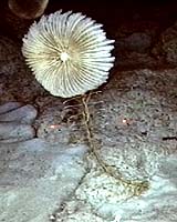 Salt Lake City UT (SPX) Oct 18, 2005 With their long stalks and feathery arms, marine animals known as sea lilies look a lot like their garden-variety namesakes. Perhaps because of that resemblance, scientists had always assumed that sea lilies stayed rooted instead of moving around like their stalkless relatives, the feather stars. But videos taken from a submersible research vessel at a depth of 430 meters (1410 feet) near Grand Bahama Island reveal that some sea lilies can creep along the ocean floor, apparently to escape from sea urchins that prey upon them. The video and related studies help paint a bigger picture of the evolution and ecology of these deep-sea creatures and their predators. University of Michigan professor of geological sciences Tomasz Baumiller showed the videos and discussed the research Oct.16 at a meeting of the Geological Society of America in Salt Lake City, Utah. Sea lilies and feather stars, members of a group called crinoids, are closely related to starfish, sea cucumbers and sea urchins. The two main types of crinoids look a lot alike except that sea lilies have stalks, and feather stars do not. In addition, feather stars are known to crawl, and some can even swim, but sea lilies were thought not to have such abilities. However, Baumiller and collaborator Charles Messing of Nova Southeastern University's Oceanographic Center in Dania Beach, Fla., have long suspected that some sea lilies are able to move around. In previous work, the researchers found that some sea lilies regularly shed and regenerate the ends of their stalks. Interestingly, the stalks don't break off just anywhere, but at particular nodes, just below clusters of flexible, finger-like appendages. Baumiller and Messing speculated that the sea lilies might be shedding the ends of their stalks to release themselves from the places where they were anchored, then somehow moving to another location and using the fingers to reattach. In the late 1980s the researchers observed that sea lilies could, in fact, move from place to place - Baumiller had put some in a flow tank and noticed that they changed position from day to day, and Messing had noticed the same thing during dives with a submersible off Jamaica and Grand Cayman Island. Both researchers saw sea lilies using their feathery arms to crawl, dragging their stalks behind them, but the scientists wondered what induced sea lilies to relocate in nature. Physical disturbance, overcrowding or predation all were possible factors, but compelling evidence for any of these explanations was lacking. Then, while going through hundreds of hours of video shot during submersible dives made more than a decade ago, the researchers came across footage that offered an explanation for why sea lilies might get up and go. The videos showed sea urchins lurking in gardens of sea lilies, some of which appeared to be crawling away from the predators. In some photos, the sea floor around the urchins was littered with sea lily appendages, like table scraps left from a feast. What's more, the sea lilies were moving a hundred times faster than previous observations had suggested. Further studies by Baumiller, Messing, and Rich Mooi of the California Academy of Sciences suggested that sea urchins don't eat bits of dead sea lilies that they find on the ocean floor but rather bite pieces right off their prey, giving sea lilies plenty of incentive to shed their stalk ends and flee. "It's the lizard's tail strategy," said Baumiller, who is also a curator in the UM Museum of Paleontology. "The sea lily just leaves the stalk end behind. The sea urchin is preoccupied going after that, and the sea lily crawls away." And the speed at which they move---three to four centimeters per second - suggests that "in a race with a sea urchin, the sea lily would probably win." Now Baumiller is studying fossil crinoids, looking for telltale structures that will help him understand how and when sea lilies developed the ability to move around and shed their stalk ends. He also hopes to learn more about the roots of the relationship between crinoids and their predators. "We think that perhaps the interaction between these slow-moving, bottom-dwelling predators and crinoids is a long one," he said, "and that it may have been connected in some way to pushing crinoids into developing these defensive strategies." Community Email This Article Comment On This Article Related Links Tomasz Baumiller University of Michigan Museum of Paleontology SpaceDaily Search SpaceDaily Subscribe To SpaceDaily Express Darwin Today At TerraDaily.com