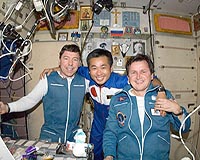 Houston TX (SPX) Apr 04, 2009 The Expedition 18 and 19 crews wrapped up a busy week of joint operations aboard the International Space Station Friday. Throughout the week, the newly-arrived Expedition 19 crew members spent much of their time familiarizing themselves with their new home and conducting handover activities with the outgoing Expedition 18 crew. Expedition 18 Commander Mike Fincke officially handed over control of the station to Expedition 19 Commander Gennady Padalka and his crew during the traditional Change-of-Command ceremony Thursday. Fincke and Flight Engineer Yury Lonchakov are targeted to return to Earth on April 8. Joining them aboard their Soyuz TMA-13 spacecraft will be Charles Simonyi, a spaceflight participant who arrived at the station with Expedition 19 for a two-week stay. Staying aboard the station with Padalka are flight engineers Koichi Wakata and Michael Barratt. The crews kept busy Friday with a variety of science, maintenance and handover activities. They also went over Soyuz undocking procedures with specialists to prepare for the departure of Fincke, Lonchakov and Simonyi next week. Over the weekend, crew members will continue undocking preparations. They will also continue their regular science, maintenance and exercise activities and have an opportunity to speak with family members. Share This Article With Planet Earth