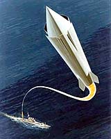 Hampton - Jul 11, 2002 In a wind tunnel in Hampton, Virginia , on the 30th of May this year, a new kind of cruise missile engine, called a scramjet, was fired up. Just like any other cruise missile engine, it used conventional liquid hydrocarbon fuel, but this one was a mite different. In simulated hypersonic conditions, this engine reached MACH 6.5 speeds at 90,000 feet altitude. This is fast. In fact it is extraordinarily fast...over six times the speed of sound. All rocket motors (we'll confine ourselves to good old-fashioned chemical rockets for now, like sky rockets, Saturn Vs, Space Shuttle engines, and ICBMs and forget about more exotic kinds) work by burning propellant, which typically consists of a fuel and an oxidizer. The point here is that rockets carry both their fuel and oxidizer with them. They don't get their oxidizer from the air like typical engines do. This is why rocket engines work in space� where there is no air. Jet engines carry only fuel, and get their oxygen from their air intakes. All jet engines have to get the air to the fuel, ignite it, and expel the hot exhaust gases out the back. To get the stuff to burn hot enough (so the gases will leave fast enough to generate enough thrust to move the aircraft) you've got to compress the air. Turbojets compress the air by using big, spinning turbine blades, so they don't have to be moving fast (or even at all) when you start them up � the blades spin, the air gets compressed, the fuel gets injected, the fuel and the compressed air burn, and the exhaust goes blazing out the back (cool, huh?). All jet airliners and combat jets use either turbojets or turbofans. But, if you're going fast enough, you can compress the air without the fans just by forcing it through a narrow neck. The air gets rammed together as it moves toward the combustion chamber, and so these engines are called ramjets (get it?). The downside, of course, is that you have to get the ramjet moving before it lights off, and so ramjet-powered craft have typically been either carried aloft by other planes, or kicked up to a high speed by a turbojet or rocket booster. Once it gets going fast enough, then the ramjet takes over. Ramjets can achieve very high speeds, but a new, enhanced kind of ramjet, the [ib]scramjet, can go even faster. Scramjet is a semi-acronym meaning supersonic combustion ramjet. It works basically like a ramjet, but it's designed to handle some strange and tricky combustion dynamics � with air moving faster than the speed of sound � at supersonic speeds. The ramjet can reach Mach 4 with interior air slowed down to subsonic speeds. A scramjet will fly faster than Mach 5, and can achieve this with combustion of air moving at supersonic speeds. But ONR science officer Gil Graff points out, "Nobody has ever flown a scramjet - yet." The new engine just tested will be used in the joint Defense Advance Research Projects Agency DARPA)/Office of Naval Research (ONR) Flight Demo program called HyFly. HyFly will flight-test a missile able to cruise at speeds of up to Mach 6 to a range of 600 nautical miles. The engine is being developed for us by The John's Hopkins University Applied Physics Laboratory under ONR's Hypersonic Weapon Technology Program. "Ultimately, the missile will be designed to launch from ships, submarines, and Navy and Air Force aircraft," says Graff. "We'll get to powered flights at Mach 4 in November 2004, with Mach 6 flights starting a year later. Obviously, the faster we can get a missile on target anywhere in the world, the less likely an enemy will be able to intercept it on the way in." CAPTION: a supersonic vehicle is one that goes faster than the speed of sound. Sound travels at different speeds through different media, but a standard measure used is the speed of sound at sea level through dry air at a temperature of 32 degrees Fahrenheit. Mach 1 is the speed of sound, Mach 2 is twice the speed of sound, etc. Definitions vary, but NASA defines hypersonic flight as flight at speeds of Mach 5 and higher. Community Email This Article Comment On This Article Related Links Office of Naval Research DARPA SpaceDaily Search SpaceDaily Subscribe To SpaceDaily Express Rocket Science News at Space-Travel.Com