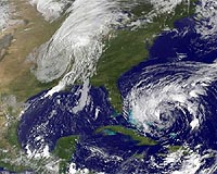 Port-Au-Prince (AFP) Sept 4, 2008 Tropical Storm Hanna closed in on the southeastern US Thursday after hammering Haiti and was expected to surge into a hurricane, even as explosive Hurricane Ike gathered force in the Atlantic. Hanna "has been an erratic storm. It's already done a lot of flooding (and) we are expecting it to strengthen slightly" before Friday, when it is due to pound the US states of North or South Carolina, US National Hurricane Center forecaster John Cangialosi told AFP. Helicopters plucked desperate survivors from rooftops in the flooded Haitian city of Gonaives after Hanna claimed at least 61 lives, the third major storm to pound the poorest country in the Americas in as many weeks. Meanwhile a monster storm over the Atlantic Ocean, Hurricane Ike, turned into an "extremely dangerous" category four storm on the five-level Saffir-Simpson scale, the hurricane center reported. The storm, the fifth of the 2008 hurricane season, was moving across the Atlantic hundreds of miles from any land with winds of 215 kilometers (135 miles) per hour. It was too early to predict if "land areas might eventually be affected," the NHC said. "It is absolutely a powerful hurricane (but) there is no immediate threat" to land, Cangialosi said. He said it was too soon to tell if it would track toward the US eastern coastline, or westward toward the Gulf of Mexico. "Just keep your eyes on it," Cangialosi warned. As of 0900 GMT, Hanna was moving northwest and was expected to pass east of the central and northwestern Bahamas on Thursday "and will be near the southeast coast of the United States by Friday or Friday night," it said. Hanna had maximum sustained winds of about 110 kilometers (70 miles) per hour and rain bands and tropical storm force winds swirled as far as 465 km (290 miles) from its center early Thursday. A hurricane watch was in effect from Surf City in North Carolina to north of Edisto Beach on the South Carolina coast, the hurricane center said. As meteorologists monitored Hanna and Ike, vast flooding in Haiti revived memories of lethal Tropical Storm Jeanne in 2004, when about 3,000 people were killed, mostly in the northern city of Gonaives. The UN peacekeeping mission in Haiti (MINUSTAH) carried out dramatic helicopter rescues to save those stranded by the high water. "We have managed to recover two dozen people who were trapped on rooftops," MINUSTAH spokeswoman Sophie Boutaud de la Combe told AFP, adding that nine injured people were flown to the capital for treatment. Mountainous Haiti is especially prone to flooding and landslides due to widespread deforestation on its section of the island of Hispaniola, which it shares with the Dominican Republic. Tens of thousands of people in both countries were forced to take refuge due to the driving rain and flooding, though there were no casualties reported in the Dominican Republic. Hanna struck Haiti one week after it was hit by Hurricane Gustav, which killed 77 people. Two weeks ago, Tropical Storm Fay sparked flooding in Haiti that left about 40 people dead. As Hanna churned, the government of the Bahamas downgraded its hurricane watch to a tropical storm warning, while the US embassy in Nassau announced it would be closed Thursday and Friday. Officials at Grand Bahama hospitals said they were confident they could handle any emergency. A third storm, Josephine, was reported in the eastern Atlantic 605 kilometers (375 miles) west of the southernmost Cape Verde islands at tropical storm strength, but was expected to weaken as it moved west-northwest Thursday. Community Email This Article Comment On This Article Share This Article With Planet Earth