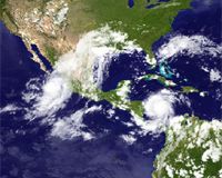 Mexico City (AFP) Sept 4, 2007 The leading edge of Hurricane Henriette, packing winds of 120 miles (193 kilometers) an hour, began lashing Mexico's Baja California Sur peninsula at 1636 GMT, the National Weather Service said Tuesday. Henriette's wrath was being felt after Hurricane Felix slammed ashore earlier Tuesday in Nicaragua at the topmost intensity on the Saffir-Simpson scale. Heavy rains were expected to lash the coast dotted with resorts from Santa Rosalia to La Paz, the service said. More than 2,000 people had been evacuated ahead of the storm's arrival. While still a tropical storm, Henriette left seven people dead over the weekend amid widespread mudslides along Mexico's southern and southeastern Pacific coast. Felix roared into northeastern Nicaragua with maximum sustained winds of 260 kilometers (160 miles) per hour, and higher gusts, according to the Miami-based National Hurricane Center.
