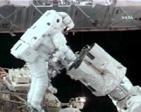 Washington DC (RIA Novosti) Mar 25, 2009 Astronauts from the U.S. shuttle Discovery have successfully finished their third and the final spacewalk during the current mission to the International Space Station, NASA said on its website. During a six and a half hour spacewalk, Joseph Acaba and Richard Arnold "repositioned an equipment cart from the Port 1 to Starboard 1 truss segment, installed a new coupler on the CETA cart, lubricated snares on the "B" end of the space station's robotic arm," but failed to fix a problem with a jammed cargo carrier system, tying it safely in place instead. During the first spacewalk of the mission on Thursday, Swanson and Richard Arnold installed the last set of solar wings on the ISS to bring the total number of solar panels to eight. The solar array will provide the electricity to fully power scientific experiments and support the station's expanded crew when it is increased to six in May. During the second spacewalk late on Sunday, Swanson and Acaba installed a second Global Positioning Satellite antenna on the Japanese Kibo laboratory, as part of work to complete the orbital station. However, they were unable to deploy the Port 3 unpressurized cargo carrier attachment system due to an unidentified problem, NASA said. The Discovery lifted off from Florida's Cape Canaveral on Monday and docked with the ISS at 17:20 EDT on Wednesday (21:20 GMT Tuesday). The shuttle delivered a crew of seven to the ISS, including Japanese Aerospace Exploration Agency astronaut Koichi Wakata, and also brought with it the space station's fourth and final set of solar panels. Wakata, the ISS's first long-duration Japanese resident, replaced U.S. astronaut Sandra Magnus, who will return to Earth on Discovery after more than four months aboard the space station. The Japanese astronaut is scheduled to return to Earth during the next shuttle mission, STS-127, scheduled for June 2009. NASA is planning to wrap up the current Discovery mission on March 25 and the shuttle is scheduled to land on March 28 at 13:42 EDT (17.42 GMT).