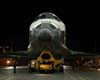 Cape Canaveral FL (SPX) Nov 02, 2006In darkness, Discovery rolls out of its processing facility at NASA's Kennedy Space Center for the short trip to the Vehicle Assembly Building. Once there, the orbiter will be joined to its large external tank and twin solid rocket boosters, which are already stacked on the mobile launch platform. |
