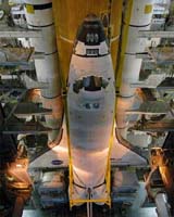 earlier related report On Tuesday night, drivers moved Discovery from the shuttle processing facility to the Vehicle Assembly Building at NASA's Kennedy Space Center in Florida. Discovery, perched on top of the giant, 76-wheel orbiter transporter system, began moving out of the facility at 9:23 p.m. EST. In the assembly building, technicians attached Discovery to its propulsion elements, an external fuel tank and twin solid rocket boosters. Following those operations, final integration, preparations and closeouts began in preparation for flight. Discovery's next milestone is the 4.2-mile trip to Launch Pad 39B in preparation for its mission, designated STS-116. During the 11-day mission, the shuttle's seven astronauts will rewire the station to bring online new power supplies generated by solar arrays installed in September. Community Email This Article Comment On This Article Related Links Shuttle at NASA Space Shuttle News at Space-Travel.Com Space Shuttle News at Space-Travel.Com