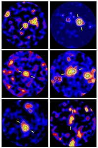 Edinburgh - Sep 19, 2003 Revealing images produced by one of the world's most sophisticated telescopes are enabling a team of Edinburgh astronomers to see clearly for the first time how distant galaxies were formed 12 billion years ago. Scientists from the UK Astronomy Technology Centre (UK ATC) and the University of Edinburgh have been targeting the biggest and most distant galaxies in the Universe with the world's most sensitive submillimetre camera, SCUBA. The camera, built in Edinburgh, is operated on the James Clerk Maxwell Telescope in Hawaii. The images, published in Nature tomorrow (18 September), reveal prodigious amounts of dust-enshrouded star formation which could ultimately tell scientists more about the formation of our own galaxy. It is thought these distant galaxies in the early Universe will evolve into the most massive elliptical galaxies seen at the present day. These giant galaxies consist of 1000 billion stars like our Sun and are found in large groups or clusters. Dr Jason Stevens, astronomer at the UK ATC in Edinburgh explained why understanding the evolution of these galaxies is so important. "The distant, youthful Universe was a very different place to the one we inhabit today. Billions of years ago, massive galaxies are thought to have formed in spectacular bursts of star formation. These massive elliptical galaxies have relatively simple properties. We hope that by understanding how simple galaxies form we will be one step closer to understanding how our own, spiral, Milky Way galaxy formed". Prof. Jim Dunlop, Head of the University of Edinburgh's Institute for Astronomy said: "For a long time astronomers have anticipated that the formation of the most massive galaxies should have been a spectacular event, but failed to find any observational evidence of massive galaxy formation from optical images. Now we have discovered that it is indeed spectacular, but because of the effects of interstellar dust, the spectacle is only revealed at submillimetre wavelengths." The dust absorbs the bright blue light emitted by young stars. The energy from the light heats the dust and makes it glow. It is this glow that is detected by the SCUBA camera. Dr Stevens and his colleagues suspected that these massive galaxies would form in particularly dense regions of space so they chose regions of very distant space that are known to be very dense because they contain massive radio galaxies - galaxies which emit high levels of radio waves. They found that many of the radio galaxies have near-by companion objects that had not previously been detected at any wavelength. Dr Rob Ivison, also at the UK ATC, described what they found. "The companion objects are located in the densest parts of the intergalactic medium, strung out like beads of water on a spider's web due to the filamentary structure of the Universe". The SCUBA images support a popular current model of galaxy formation in which today's massive elliptical galaxies were assembled in the early Universe in dense regions of space through the rapid merging of smaller building blocks. How do astronomers look back in time? The further light has to travel across the universe before it reaches the earth, the longer it takes to get here. That may sound obvious but it is very useful for astronomers. It means that when they look at objects in the furthest reaches of the universe, the light which is captured by the telescope and camera has taken most of the age of the universe to reach the earth. In other words they are also looking back in time to how the universe was shortly after it formed. However, it is not as easy as it sounds. On its way across the universe the light becomes stretched (because the universe is expanding) so that when it reaches the earth it is at much longer wavelengths than it was when it was originally emitted. This is known as 'red-shift'. The light from the star-forming galaxies in this study has been stretched so much that it has been shifted from the far-infrared waveband, accessible only from space, to the submillimetre waveband. Submillimetre radiation is emitted in the region of the electromagnetic spectrum which lies between infrared light and radio waves. Because it is absorbed by water vapour in the atmosphere it can only be detected from the Earth's highest mountains - in this case the 14,000ft Mauna Kea on Hawaii. The radiation that we detect is predominantly produced by a population of young hot young stars. This star-light is absorbed by small grains of graphite and silicate - 'interstellar dust' - and is re-radiated at longer far-infrared and submillimetre wavelengths. Community Email This Article Comment On This Article Related Links James Clerk Maxwell Telescope PPARC SpaceDaily Search SpaceDaily Subscribe To SpaceDaily Express Nuclear Space Technology at Space-Travel.com