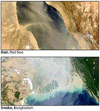 Greenbelt - Sep 19, 2002 Driven by precise new satellite measurements and sophisticated new computer models, a team of NASA researchers is now routinely producing the first global maps of fine aerosols that distinguish plumes of human-produced particulate pollution from natural aerosols. In the current issue of the journal Nature, atmospheric scientists Yoram Kaufman, at NASA's Goddard Space Flight Center, Greenbelt, Md., Didier Tanr� and Olivier Boucher from CNRS (Centre National de la Recherche Scientifique) at the University of Lille, reported in a review paper that these global maps are an important breakthrough in the science of determining how much aerosol pollution comes from human activities. Aerosols are tiny solid or liquid particles suspended in the atmosphere. The authors stated that the next step is to quantify more precisely the roles human aerosol pollution plays in Earth's weather and climate systems. "Plumes of smoke and regional pollution are distinguished by their large concentrations of small particles (less than 1 micrometer) downwind of biomass burning sites and urban areas," Kaufman said. "These particles are important because, depending upon the type of particles produced, human pollution can either have a warming or cooling influence on climate, and they can either increase or decrease regional rainfall." Distinguishing small from large aerosol particles requires good understanding of how aerosols reflect sunlight at key wavelengths of the solar spectrum. For the first time ever, the Moderate Resolution Imaging Spectroradiometer (MODIS) instrument flying aboard NASA's Terra and Aqua satellites measures precisely the sunlight reflected by aerosols back to space every day over almost the entire planet at wavelengths spanning across the solar spectrum (from 0.41 to 2.2 micrometers). Aerosol plumes comprised of smaller particles (less than 1 micrometer) reflect light at shorter wavelengths (blue light) much more strongly than plumes comprised of larger particles (greater than 1 micrometer) which scatter and reflect light roughly equally at short and long wavelengths (blue, green, red and near-infrared light). It is this basic understanding that helps scientists use MODIS data to distinguish human-produced aerosol. However, there are exceptions to this rule. Kaufman noted that nature produces small particles too, while humans can generate large particles by changing land surface cover through agricultural practices and deforestation. Therefore, scientists need additional information-such as land use and fire activities, which are also observed by satellites, as well as information on population and economic activities-that is fed into advanced new computer aerosol models. "Natural aerosols like salt particles from sea spray are typically widespread over larger areas and not particularly concentrated downwind of urban areas," Kaufman observed. "Or, they are particularly concentrated downwind of obviously natural sources, such as the streams of dust originating from the Sahara Desert." Conversely, aerosols produced by humans are the result of urban pollution, industrial combustion, or burning vegetation. These plumes of pollutants appear in punctuated bursts of thick and concentrated plumes comprised of small particles. Or, they are concentrated downwind of regions obviously altered by human activities, such as deforested regions. The authors find surprisingly good agreement between a new aerosol model (developed jointly by NASA Goddard and Georgia Tech) and the measurements now being made by the MODIS sensors. Examining global satellite images in concert with global-scale models and globally distributed ground-based measurements gives scientists the best tools they have ever had to estimate the effects of aerosols on climate and weather patterns around the world. The new aerosol measurements collected by the Terra and Aqua satellites provide dramatic improvements over the measurements made by previous satellites over the last two decades. Another instrument on Terra, the Multi-angle Imaging SpectroRadiometer (MISR), observes aerosols by looking at the radiation reflected and scattered by aerosols in nine different directions. This multi-angle technique complements the multi-wavelength approach by NASA. NASA plans to further expand global aerosol research with the launch of satellite-based light imaging radars (lidars) that sends bursts of light to Earth and, like a radar signal, provide a measure of the altitude and vertical structure of aerosol plumes and clouds. Community Email This Article Comment On This Article Related Links MODIS Instrument POLDER and ADEOS SpaceDaily Search SpaceDaily Subscribe To SpaceDaily Express Dirt, rocks and all the stuff we stand on firmly