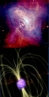 Neutron stars, pulsars and magnetars Millions of neutron stars populate our Milky Way galaxy. A neutron star is the remaining core of a massive star, once it has exploded. Made almost entirely of neutrons (subatomic particles with no electric charge), this stellar corpse concentrates more than the mass of our Sun within a sphere of ~20 km diameter. It is so dense that a sugar cube of neutron star on Earth would weight as much as all of humanity! Two other physical properties characterise a neutron star, their fast rotation (or spin) and their high magnetic field. Astronomers have found different classes of neutron stars based on these properties. Some of them are the fastest spinning stars in the Universe (up to hundreds of revolutions per second); named pulsars (Image 1), as they generate regular pulses of electromagnetic radiation including radio, visible, X-ray and gamma-ray wavelengths. These pulses are often compared to a spinning lighthouse beacon which appears to flash on and off. Another class of neutron stars is known as magnetars (Image 2), due to their ultra-high magnetic field. Their magnetic field intensity is indeed about 100 gigaTesla (or 1011 T), a thousand times more than an ordinary neutron star. By comparison, the Earth's magnetic field is about 50 microTesla (5�10-5 T). Most media used for data storage can be erased if they are exposed to a magnetic field of milliTesla (10-3 T) intensity. So far, a dozen of magnetars have been found. Four of them are also known as soft gamma repeaters, or SGRs, because they sporadically release large bursts of low energy (soft) gamma rays and (hard) X-rays, usually during short time periods (~ 0.1 s). On 27 December 2004, the radiation from an extremely powerful explosion on the surface of SGR 1806-20 (the numbers indicate its position in the sky) reached Earth and lasted more than 6 minutes. During the first 200 ms, the amount of energy released was equivalent to what our Sun radiates in 250 000 years. It is the brightest event known to have impacted the Earth from an origin outside our solar system. SGR 1806-20 is located at around 50 000 light-years from Earth on the far side of our Milky Way galaxy, in the direction of the Sagittarius constellation (Image 3). A similar blast within 10 light years would have destroyed the ozone layer and be similar to a major nuclear blast. Fortunately, the closest known magnetar is 13 000 light years away.