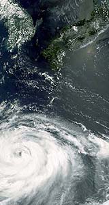 Typhoon season A typhoon is the term for a tropical cyclone that occurs in the northwest Pacific or Indian Oceans west of the International Dateline. It is a large, powerful storm that rotates around a central area of extreme low pressure. Typhoons arise in warm tropical waters that transfer their heat to the air. The warmed air rises rapidly, in the process creating an area of low pressure at the water surface. Winds begin rushing inwards and upwards around this low-pressure zone. Typhoons can form all-year-round in the waters off China, but the peak season comes between June and December. Community Email This Article Comment On This Article Related Links ECMWF China Remote Sensing Ground Station (RSGS) SpaceDaily Search SpaceDaily Subscribe To SpaceDaily Express Bringing Order To A World Of Disasters When the Earth Quakes A world of storm and tempest