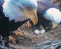 Vancouver, Canada (AFP) May 08, 2006 After the last egg of a suddenly famous family of bald eagles vanished before a worldwide Internet audience, a Canadian conservationist has begun setting up more wildlife Internet cameras. For weeks, a camera pointed at a nest of eagles on Canadas west coast has streamed their life-and-death drama to as many as 10 million Internet watchers each day, becoming one of the worlds most popular websites. "Its absolutely bizarre," said David Hancock, who put the eagle images on line. In a lifetime devoted to nature issues, the 68-year-old biologist and book publisher said he has never seen such a huge audience enthralled with wild animals. The web camera's owner is David Carrick, an accountant who retired 15 years ago on Hornby Island, in Canadas westernmost province of British Columbia. "We had no idea it would catch on like it did," marveled Carrick. An Internet site was the last thing on Carricks mind when he decided he wanted a close-up view of an eagle nest in his back yard. In 2004, while the birds were away on their fall migration, he obtained government permission and had a tree-climber install a small camera beside the nest, connected to Carricks house. The camera, which the birds ignore, provides an intimate view of their aerie. After Carrick shared video recordings of the nest with community, school and naturalist groups, Hancock happened to see them, and offered to put the nest live on the Internet for Carrick. At first the camera, linked from hancockwildlife.org, drew a mere handful of viewers. There were more Internet hits as the pair of bald eagles laid two eggs in late March and spent the next month tending them, and traffic steadily increased. by early May, when one egg mysteriously vanished and the fate of the second hung in the balance, the website's popularity spread like wildfire. The popularity may be due to the mystique surrounding bald eagles, creatures so striking with their white head, piercing yellow eyes and an eight-foot wingspan that the United States made them a national symbol. Bald eagles mate for life, and live as long as 50 years in the wild. But Hancock thinks there is more to it than the birds image. "Were all fighting two jobs, two computers, two careers and half enough time to deal with any of them," said Hancock. "And there, sitting on your desktop computer, is this bird that doesnt give a damn about it all, but just gets up and rolls its eggs over." Hancock had originally offered to pay for the computer resources through his publishing company, but was soon shocked at the cost of running such a popular web site. "It was just donations from my end, with my daughter and a manager running the publishing company," he said. "We had to cap it at spending 5,000 Canadian dollars (4,500 US dollars) a day for bandwidth." A Vancouver company, Infotec Business Systems, offered to donate computer resources, the project drew some donations, then Microsoft phoned and offered 1,500 Canadian dollars per day in bandwidth. The nest is being streamed live each day, but this week it is a sad home after the second egg disappeared. Internet viewers watch the birds constantly rearrange the moss on their nest, as if looking for their lost young, and continue to sit as if on eggs. "For all these millions of people, it just ends," Carrick worried. Hancock said it is a mystery why the chicks failed to hatch. "This pair is exemplary, they are the perfect parents." One theory is pollution. Hancock said that like other long-lived animals at the top of the food chain, bald eagles accumulate heavy metals and man-made chemicals like pesticides as they feed on fish from the ocean. "The Pacific Ocean is contaminated. Every part of the Pacific Ocean is contaminated. Probably these birds level of toxicity is pretty high. Maybe thats shut down their reproductive systems." Hancock is now setting up webcams at two more eagle nests, and plans to install another camera to observe large so-called "spirit bears" on the coast.