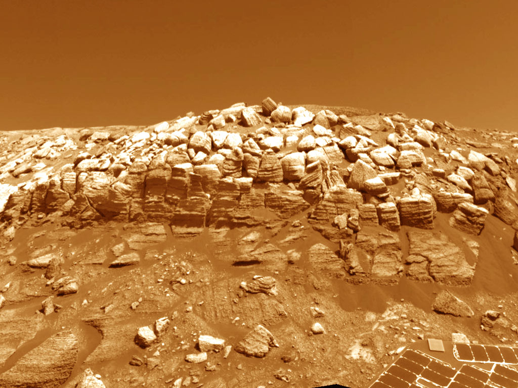 Pasadena CA (JPL) Dec 07, 2004 Opportunity has completed its super-high-resolution imaging and other remote sensing operations from the base of "Burns Cliff," collecting more than 985 megabits of telemetry. Due to the large number of observations, the data management team has been working hard to manage available memory. Opportunity has now begun its journey out of "Endurance Crater." While in the crater, Opportunity has experienced drive slippage of up to 100 percent and tilts as high as 31.05 degrees. The rover was pushed to its traverse limits, but continued to perform all that was asked of it. Opportunity remains in excellent health. Solar power is nearly as high now as it was at the beginning of the mission.