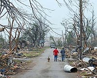 Washington (AFP) May 26, 2008 At least eight people were killed in the midwestern United States Sunday as a series of tornadoes swept through the region leaving behind a wake of destruction, CNN television reported. The network said seven people were found dead in northcentral Iowa, in the towns of Parkersburg and New Hartford when a tornado passed at about 6:00 pm (2200 GMT). Marble-sized hail also fell over Waterloo, where authorities reported significant damage to homes, trees and power lines, the report said. Iowa Governor Chet Culver declared a state of disaster in three counties. Meanwhile, in Minnesota, a separate twister killed a two-year-old child and seriously injured nine other people in the Minneapolis-Saint Paul area, CNN said. Community Email This Article Comment On This Article Share This Article With Planet Earth