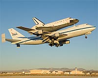 Fort Worth, Texas (UPI) Dec 10, 2008 The U.S. space shuttle Endeavour, bolted atop a Boeing 747, made an overnight stop in Texas Wednesday on its journey back to Florida from California. The 747-shuttle piggyback tandem left Edwards Air Force Base in California in the morning, made a refueling stop at Biggs Army Air Field in El Paso, Texas, and reached the Naval Air Station Joint Reserve Base, formerly Carswell Air Force Base, in Fort Worth, Texas, about 4:12 p.m. EST. The National Aeronautics and Space Administration said the next leg of Endeavour's trip would depend on the weather to the east but the spacecraft is expected to reach Kennedy Space Center Thursday or Friday. Endeavour ended a 16-day mission to the International Space Station when it touched down Nov. 30 at Edwards. The shuttle was to have been flown back to Florida last weekend, but the trip was delayed by technical problems. Endeavour was launched Nov. 14 from Kennedy. Share This Article With Planet Earth