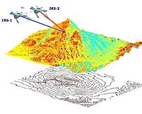What is Pol-InSAR? Radar has come a long way since its initial development for range and direction finding in the run-up to World War Two. Today satellites such as ESA's Envisat routinely scan the Earth with radar signals, building up highly detailed surface images - even through clouds and local darkness � out of reflected radar backscatter. In addition to simply imaging a site, two radar images of the same location acquired from close to the same position in space can be combined together using a technique called SAR interferometry (InSAR). Working on the same basis as stereoscopic vision, a dual image InSAR dual-image combinations throw up colourful interference pattern 'fringes' that resemble contour lines on the map. These fringes contain topographic height information that can be used to generate highly accurate digital elevation models (DEMs). InSAR can also be applied to detecting millimetre-scale ground movement taking place between acquisitions, such as ground subsidence or tectonic motion. Extra information can also be gathered on a site based on the fact that radar signals can have different polarisations; just as visible light does � as demonstrated by the high amount of glare screened out with polarized sunglasses. Envisat's Advanced Synthetic Aperture Radar (ASAR) is a dual-polarisation instrument, meaning that it can transmit and receive in either Horizontal (H) or Vertical (V) polarisations. In Alternating Polarisation (AP) mode it transmits in the same way, but can receive back radar pulses in both H and V polarisations. Combinations of HH/VV HH/HV or VV/VH polarisation pairs are possible. Depending on the physical and chemical properties of the surface, the responses from these different combinations of polarisation pairs can vary considerably, for example enabling the differentiation of separate crop species in the same field, or telling sea ice from open water. The new generation of airborne radar sensors go one better than ASAR because they include full quad-polarisation capability: this means their signal can be retrieved simultaneously in H and V polarisations, so that by sending alternating H and V pulses a full spread of combinations can be obtained, generating more information-rich imagery. These two techniques of InSAR and polarimetry have both been around a long time. Pol-InSAR is the combination of these two processes � the performance of interferometry from multi-polarised radar images. "Using Pol-InSAR brings us an extra dimension in the imaging of forests," said Scott Hensley of California's Jet Propulsion Laboratory (JPL). "The interferometry part gives us the height data, while the polarisation part provides information on depth and also the orientation of objects relative to the instrument. This can then be processed to form a complete three-dimensional picture." In the case of forests, Pol-InSAR typically relies on longer L- or P- band wavelengths upon in preference to the shorter C-band wavelengths used by the radar satellites currently in orbit - these code letters being a legacy from radar's wartime origins. Envisat's C-band radar has a wavelength of 5.8 centimetres, which is too short to pierce through a dense forest canopy. Instead Pol-InSAR measurements are made using L- and P-band wavelengths, which range between around 15 to 100 cms � closer to the dimensions of the trees researchers are interested in. The E-SAR sensor used during INDREX-II has multi-polarisation X-, C- L- and P-band wavelengths available. Hensley's team has been surveying tropical forests in Costa Rica with the AIRSAR airborne instrument, similarly with multi-polarisation C-, L- and P-band wavelengths.