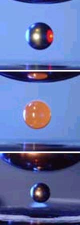 Huntsville - Jul 02, 2003 NASA-funded researchers recently obtained the first complete proof of a 50-year-old hypothesis explaining how liquid metals resist turning into solids. The research is featured on the cover of the July issue of Physics Today. It challenges theories about how crystals form by a process called nucleation, important in everything from materials to biological systems. "Nucleation is everywhere," said Dr. Kenneth Kelton, the physics professor who leads a research team from Washington University in St. Louis. "It's the major way physical systems change from one phase to another. The better we understand it, the better we can tailor the properties of materials to meet specific needs," he said. Using the Electrostatic Levitator at NASA's Marshall Space Flight Center in Huntsville, Ala., Kelton's team proved the hypothesis by focusing on the "nucleation barrier." German physicist Gabriel D. Fahrenheit, while working on his temperature scale, first observed the barrier in the 1700s. When he cooled water below freezing, it didn't immediately turn into ice but hung around as liquid in a supercooled state. That's because it took a while for all the atoms to do an atomic "shuffle" arranging in patterns to form ice crystals. In 1950, Dr. David Turnbull and Dr. Robert Cech, researchers at the General Electric Company in Schenectady, N.Y., showed liquid metals also resist turning into solids. In 1952, physicist Dr. Charles Frank, of the University of Bristol in England, explained this "undercooling" behavior as a fundamental mismatch in the way atoms arrange themselves in the liquid and solid phases. Atoms in a liquid metal are put together into the form of an icosahedron, a pattern with 20 triangular faces that can't be arranged to form a regular crystal. "The metal doesn't change to a solid instantly, because it costs energy for the atoms to move from the icosahedral formation in the liquid to a new pattern that results in a regular crystal structure in the solid metal," explained Kelton. "It's like being in a valley and having to climb over a mountain to get to the next valley. You expend energy to get over the barrier to a new place," he said. Frank didn't know about quasicrystals, first discovered in 1984, and researchers didn't have tools like NASA's Electrostatic Levitator. Using electrostatic energy to levitate the sample was crucial, because stray contamination from containers causes crystals to form inside liquid metals, which would have ruined Kelton's measurements on pure samples. To measure atom locations inside a drop of titanium-zirconium-nickel alloy, the levitator was moved to the Advanced Photon Source at Argonne National Laboratory in Chicago. There, an energetic beam of X-rays was used to map the average atom locations as the metal turned from liquid to solid. The experiment was repeated several times, and the data definitively verified Frank's hypothesis. As the temperature was decreased to solidify the molten sample, an icosahedral local structure developed in the liquid metal. It cost less energy to form the quasicrystal, because it had an icosahedral structure. This caused the quasicrystal to nucleate first, even though it was less stable than the crystal phase that should have formed. The icosahedral liquid structure was therefore directly linked to the nucleation barrier, as proposed by Frank. To prepare for an International Space Station experiment, the team is continuing levitator experiments. The new techniques being developed for these studies can be applied to solve advanced materials problems on Earth and for spacecraft applications. "As NASA scientists develop advanced materials for rocket engines and spacecraft, our facility will be a technological tool they can use to characterize materials," said Dr. Jan Rogers, a Marshall Center scientist who assisted Kelton's research team. Kelton's team at Washington University included Geun Wu Lee, a graduate student, and Anup Gangopadhyay, a research scientist; Jan Rogers, Tom Rathz and Mike Robinson, all of the Marshall Center; Robert Hyers, University of Massachusetts, Amherst; and Doug Robinson, Ames Laboratory, U.S. Department of Energy, Ames, Iowa. Kelton conducts his research under NASA's Materials Science Program managed by the Marshall Center. A peer-reviewed article that discusses this work appeared in the May 16 issue of Physical Review Letters. The research was featured in the May 30 issue of Science. Community Email This Article Comment On This Article Related Links More images and captions SpaceDaily Search SpaceDaily Subscribe To SpaceDaily Express Space Technology News - Applications and Research