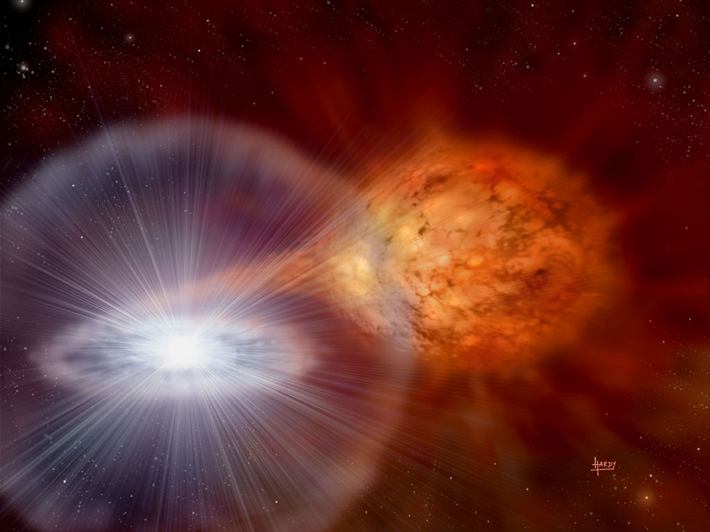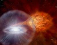 SpaceDaily US Editor Washington DC (SPX) Apr 10, 2006 Last Feb. 12, amateur astronomers around the world began reporting something that teams of their professional counterparts had been eagerly awaiting: A faint star in the constellation Ophiuchus suddenly became clearly visible to the naked eye in the night sky. With that news, an international team trained dozens of instruments both ground-based and orbiting on RS Ophiuchi, a star known to have exhibited five such brightenings over the past 108 years. "We were able to get observations with telescopes around the world and in space within just a few days of the explosion," astrophysicist Tim O'Brien, with the Jodrell Bank Observatory in Cheshire, England, told SpaceDaily.com. "This means we have seen the very earliest phases of its evolution as it brightened in X-rays and radio waves, allowing us to probe conditions close to the central binary system," O'Brien said. "Our frequent follow-up observations have also led to the discovery of an entirely unexpected component in the X-ray emission, (which is) extremely bright and rapidly varying." RS Oph, as astronomers call it, is indeed a binary system comprising a white-dwarf star - the super-dense core of a former star but reduced to Earth's size after expelling its outer layers - and a much, much larger red giant. Located about 5,000 light-years away, the two stars orbit so closely together that the white dwarf's intense gravity continually strips away hydrogen-rich gas from the red-giant companion. Eventually - about every couple of decades - the dwarf accumulates enough gas to trigger a tremendous thermonuclear explosion, which causes the brightening. That explosion temporarily increases RS Oph's energy output to about 100,000 times the Sun's, ejecting gas into space at speeds of several thousand kilometers per second - or nearly 2 percent of the speed of light. Astronomers already knew this much about the binary RS Oph from previous observations. From X-ray and radio data collected during the last outburst in 1985, they also knew the star was likely to become extremely bright in these wavelengths, and they suspected this might be due to the speeding expelled material colliding with the pre-existing stellar wind. The problem, 21 years ago, was the observations did not begin quickly enough to examine important early stages of the explosion, so astronomers could not advance their understanding beyond basic suppositions. Based on the readings so far, it seems the white dwarf has a rather voracious appetite. It strips off enormous amounts of gas from the red giant, creating as gas cloud that envelops both stars. As a result, when the white dwarf periodically explodes, the event actually occurs inside its companion's extended atmosphere. Eventually, the ejected gas slams into that atmosphere at very high speed, producing the secondary brightening and the X-ray and radio emissions. "We realized from the few X-ray measurements taken late in the 1985 outburst that this was an important part of the spectrum in which to observe RS Oph," said astrophysicist Michael Bode of Liverpool John Moores University in Birkenhead, England. Bode led the observing team during the 1985 outburst, and he now heads a group using NASA's Swift spacecraft that is observing the explosion. "The expectation was that shocks would be set up both in the ejected material and in the red giant's wind, with temperatures initially of up to around 100 million degrees Celsius - nearly 10 times that in the core of the Sun," said Bode, who presenting the current findings on the event at last week's Royal Astronomical Society meeting. "We have not been disappointed," he added. Swift's first observation, taken only three days after RS Oph's latest outburst began, revealed a very bright X-ray source. Over the initial few weeks, it became even brighter and then began to fade. Spectral readings suggested the gas was cooling down - although it remained tens of millions of degrees hot. "About a month after the outburst, the X-ray brightness of RS Oph increased very dramatically," said Julian Osborne of the University of Leicester. "This was presumably because the hot white dwarf, which is still burning nuclear fuel, then became visible through the red giant's wind." Osborne said the new X-ray emissions also were extremely variable, to the point where they pulsed about every 35 seconds. Although the data are preliminary, he said, "one possibility for the variability is that this is due to instability in the nuclear burning rate on the white dwarf." Another team - using the U.K. MERLIN radiotelescope array and beginning their observations only four days after RS Oph exploded - recorded radio emissions that were "much brighter than expected," said Stewart Eyres of the University of Central Lancashire. "Since then it has brightened, faded and then brightened again. With radio telescopes in Europe, North America and Asia now monitoring the event very closely, this is our best chance yet of understanding what is truly going on." Teams studying the event in optical and infrared wavelengths have reported similar surprises. "The observations we have already obtained from the ground, from the U.K. Infrared Telescope on the summit of Mauna Kea in Hawai'i, far surpass the data we had during the 1985 eruption," said Nye Evans of Keele University in England, who heads the infrared follow-up team. The shocked red giant wind and the material ejected in the explosion give rise to emission � in the infrared, via coronal lines," Evans said. "These will be crucial in determining the abundances of the elements in the material ejected in the explosion and in confirming the temperature of the hot gas." One other critical element in the studies involves classifying the RS Oph explosion. It is possible, astronomers said, that it might be a precursor to a supernova. "RS Oph is a member of a class of binary star system that has been proposed as a progenitor of a Ty