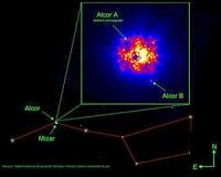Pasadena CA (JPL) Dec 11, 2009 Next time you spy the Big Dipper, keep in mind that there is another star, invisible to the unaided eye, contributing to this constellation. According to a new paper soon to be published in The Astrophysical Journal, one of the stars that makes the bend in the ladle's handle, Alcor, has a smaller red dwarf companion. Newly discovered Alcor B orbits its larger sibling and was caught in the act with an innovative technique called "common parallactic motion" by members of Project 1640, an international collaborative team that includes astrophysicists at the American Museum of Natural History, the University of Cambridge's Institute of Astronomy, the California Institute of Technology, and NASA's Jet Propulsion Laboratory. "We used a brand new technique for determining that an object orbits a nearby star, a technique that's a nice nod to Galileo," says Ben R. Oppenheimer, Curator and Professor in the Department of Astrophysics at the Museum. "Galileo showed tremendous foresight. Four hundred years ago, he realized that if Copernicus was right - that the Earth orbits the Sun - they could show it by observing the "parallactic motion" of the nearest stars. Incredibly, Galileo tried to use Alcor to see it but didn't have the necessary precision." If Galileo had been able to see change over time in Alcor's position, he would have had conclusive evidence that Copernicus was right. Parallactic motion is the way nearby stars appear to move in an annual, repeatable pattern relative to much more distant stars, simply because the observer on Earth is circling the Sun and sees these stars from different places over the year. Alcor is a relatively young star twice the mass of the Sun. Stars this massive are relatively rare, short-lived, and bright. Alcor and its cousins in the Big Dipper formed from the same cloud of matter about 500 million years ago, something unusual for a constellation since most of these patterns in the sky are composed of unrelated stars. Alcor shares a position in the Big Dipper with another star, Mizar. In fact, both stars were used as a common test of eyesight - being able to distinguish "the rider from the horse" - among ancient people. One of Galileo's colleagues observed that Mizar itself is actually a double, the first binary star system resolved by a telescope. Many years later, the two components Mizar A and B were themselves determined each to be tightly orbiting binaries, altogether forming a quadruple system. Now, Alcor, which is near the four stars of the Mizar system, also has a companion. This March, members of Project 1640 attached their coronagraph and adaptive optics to the 200-inch Hale Telescope at the Palomar Observatory in California and pointed to Alcor. "Right away I spotted a faint point of light next to the star," says Neil Zimmerman, a graduate student at Columbia University who is doing his PhD dissertation at the Museum. "No one had reported this object before, and it was very close to Alcor, so we realized it was probably an unknown companion star." The team retuned a few months later and re-imaged the star, hoping to prove that the two stars are companions by mapping the tiny movement of both in relation to very distant background stars as the Earth moves around the Sun, in other words, by mapping its parallactic motion. If the proposed companion were just a background star, it wouldn't move along with Alcor. "We didn't have to wait a whole year to get the results," says Oppenheimer. "We went back 103 days later and found the companion had the same motion as Alcor. Our technique is powerful and much faster than the usual way of confirming that objects in the sky are physically related." The more typical method involves observing the pair of objects over much longer periods of time, even years, to show that the two are moving through space together. Alcor and its newly found, smaller companion Alcor B are both about 80 light-years away and orbit each other every 90 years or more. Over one year, the Alcor pair moves in an ellipse on the sky about 0.08 arc seconds in width because of the Earth's orbit around the Sun. This amount of motion, 0.08 arcsec, is about 1,000 times smaller than the eye can discern, but a fraction of this motion was easily measured by the Project 1640 scientists. The team was also able to determine the color, brightness, and even rough composition of Alcor B because the novel method of observation that Project 1640 uses records images at many different colors simultaneously. The team determined that Alcor B is a common type of M-dwarf star or red dwarf that is about 250 times the mass of Jupiter, or roughly a quarter of the mass of our Sun. The companion is much smaller and cooler than Alcor A. "Red dwarfs are not commonly reported around the brighter higher mass type of star that Alcor is, but we have a hunch that they are actually fairly common," says Oppenheimer. "This discovery shows that even the brightest and most familiar stars in the sky hold secrets we have yet to reveal." The team plans to use parallactic motion again in the future. "We hope to use the same technique to check that other objects we find like exoplanets are truly bound to their host stars," says Zimmerman. "In fact, we anticipate other research groups hunting for exoplanets will also use this technique to speed up the discovery process." In addition to Zimmerman and Oppenheimer, authors include Anand Sivaramakrishnan, Sasha Hinkley, and Douglas Brenner of the Astrophysics Department at the Museum; Lynne Hillenbrand, Charles Beichman, Justin Crepp, Antonin Bouchez and Richard Dekany of the California Institute of Technology; Ian Parry, David King, and Stephanie Hunt of the Institute of Astronomy at Cambridge University; Remi Soummer of the Space Telescope Institute in Baltimore; and Gautam Vasisht, Rick Burruss, Michael Shao, Lewis Roberts, and Jennifer Roberts of the Jet Propulsion Laboratory at California Institute of Techno