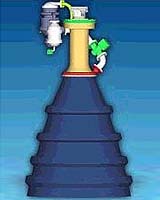 New Engine Designs Preburners heat the propellants to ready them for the engine's turbopumps before the propellants are injected into the main combustion chamber -- where the fuels combust to create thrust. Another difference is overall engine size. To achieve a higher performance level, the propellant is burned at higher pressure which reduces the size of the main combustion chamber. That, in turn, increases thrust. Chamber pressure in the new kerosene engine will be approximately 2,600 pounds per square inch absolute (psia) compared to 965 psia chamber pressure on the F-1 engine. This increased pressure allows a smaller engine to provide nearly as much thrust as the larger F-1 engine: The new kerosene engine will generate a powerful 1.1 million pounds of force -- only 400,000 pounds of force lower than the F-1 engine. The most significant difference between the F-1 engine and a second generation kerosene engine is reusability. The F-1 engines were expendable -- only capable of use for one flight. Both the RS-84 and TR107 prototype engines could become the first-ever reusable engines using kerosene and oxygen-rich gases. The new, reusable engines would dramatically lower maintenance costs and allow quicker turn-around time between missions. "A reliable, low-maintenance, reusable engine is key to affordable space launch," said Garry Lyles, Space Launch Initiative propulsion project manager at the Marshall Center. "Long engine life, whether 50 missions or 100 missions, will be selected to minimize operational cost." Kerosene does have its challenges, however. It is not as efficient a coolant as hydrogen -- a fuel more commonly used as a first- or second-stage propellant in the U.S. space program. Kerosene is a hydrocarbon fuel that becomes gummy and deposits a hard film on engine components as its temperature increases -- a process known as coking. Coking makes it difficult for the rocket propellant to pass through the small coolant pipes that make up the engine combustion chamber. Kerosene combustion also deposits soot on the turbine blades, presenting a major challenge for a reusable rocket engine with a potential 100-mission lifespan. To help offset these challenges, engineers are looking for ways to limit the kerosene temperature while cooling the thrust chamber, and limiting the sooty kerosene build-up in the turbine drive systems. The RS-84 engine design includes an inventive arrangement of small sections of manifolds -- pipes to funnel the flow of fuel -- placed along the combustion chamber and engine nozzle. The manifolds weave the flow of kerosene fuel to the coolant tubes and collect the fuel after it has cooled the hot tube walls. The manifolds are spaced so the kerosene is not heated above the coking limit. Some RS-84 manifolds will also inject a small amount of kerosene directly into the thrust chamber to create a thin film of fuel along the chamber wall, helping lower the temperature of the wall. This arrangement reduces the temperature of the chamber walls and shortens the time the fuel is exposed to hot temperatures. "Developing a safe, reliable and reusable kerosene engine has emerged as a top priority for the Space Launch Initiative Propulsion Office," said Danny Davis, RS-84 assistant manager at Marshall. "The Space Launch Initiative has determined that kerosene has significant advantages for reusable launch vehicle concepts. Our RS-84 design team is answering the reusability issues with the manifold arrangement to make this kerosene concept possible. In addition, our oxygen-rich staged combustion concept uses a cleaner, heated oxygen gas to drive the turbine to avoid past issues with kerosene-rich gasses."