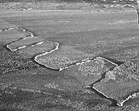 New Haven CT (SPX) Mar 05, 2007 A study reported in Physical Review Letters demonstrates how ice sheets sometimes interlace when they meet, rather than riding over or under each other, and discusses the implications for other phenomena from plate tectonics of the Earth's surface to the design of self-assembling nanostructures. "A surprising pattern, much like the meshed teeth of a zipper, is frequently seen when floating ice sheets collide," said John Wettlaufer, professor of geology and geophysics and of physics at Yale. He and his colleague Dominic Vella of Cambridge University in England demonstrated the underlying principle for the observation. Further, they suggest that the process can work for any materials that share particular physical characteristics of thickness and flexibility. "When two elastic sheets floating on a liquid collide, intuition leads us to expect one of two results - one sheet might be 'subducted' under the other, as we observe with the earth's crust, or the two might crush each other forming a field of rubble, as we observe in thick ice floes," said Wettlaufer. The researchers describe a third possibility in their study published in Physical Review Letters. They show that sheets of ice, or in their experiments, sheets of wax, form a series of interlocking blocks -- termed "finger rafting" - that alternately ride over and under one another. It is a curiosity that has vexed scientists for over 50 years. The natural patterns look like meter-wide rectangular zigzags, and only occur when both sheets of ice are roughly the same thickness. Their theoretical analysis was confirmed experimentally using flexible layers of wax on water to simulate the phenomenon. They demonstrated the relationship between the width of the resulting fingers and the material's mechanical properties. "We show that this striking observation is a general and robust mechanical phenomenon that we can reproduce in the laboratory with floating materials other than ice," he said. "Our experimental results were consistent with the field observations." According to Wettlaufer, the findings are relevant for a host of physical systems and, "The same principles might be used for designing nanomachine gears from appropriate materials." He points out that Tuzo Wilson, one of the founders of the theory of plate tectonics, was inspired by the resemblance of structures on floating polar ice sheets to the transform faults and other features of the Earth's moving plates. The National Science Foundation provided support for this research, which began at the summer program in Geophysical Fluid Dynamics at Woods Hole Oceanographic Institution. Citation: Physical Review Letters: PRL 98, 088303 (February 23, 2007) DOI: 10.1103/PhysRevLett.98.088303 Community Email This Article Comment On This Article Related Links Yale University xxxLearn about Climate Science at TerraDaily.com Beyond the Ice Age